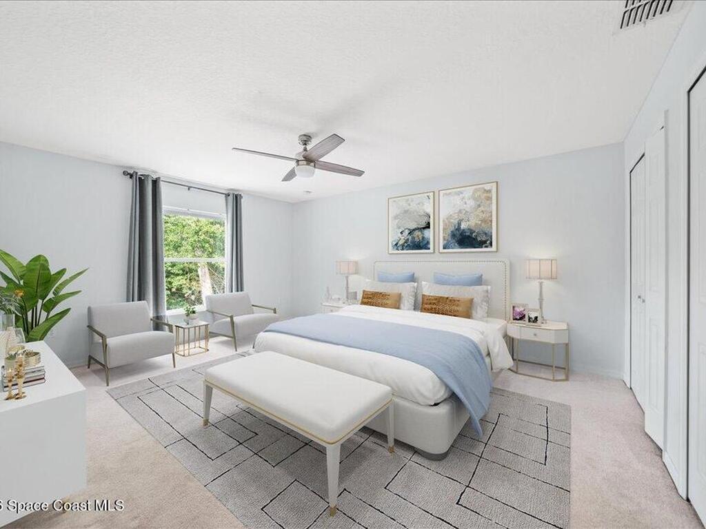 An exceptional opportunity includes an ASSUMABLE MORTGAGE @ 2.49% with approximately $275, 000 remaining offering significant savings in today's rate environment. This well-maintained home is nestled in a desirable gated community known for its sidewalks, green spaces and convenient access to top-rated schools shopping dining and nearby beaches. Designed for both comfort and flexibility the home offers four bedrooms two and a half baths plus two bonus rooms ideal for a home office, gym, playroom or guest space. Recent upgrades provide peace of mind including a new roof 2023, new AC units 2024 & 2025 and a new hot water heater 2022. Outdoor living shines with fresh landscaping completed in 2025 a fully fenced backyard and a private saltwater pool with a newer pool pump 2022 perfect for entertaining or relaxing year-round. A rare opportunity to enjoy low-maintenance Florida living at its best with an incredible low interest rate.