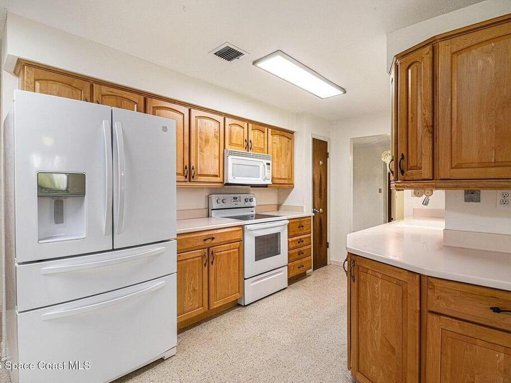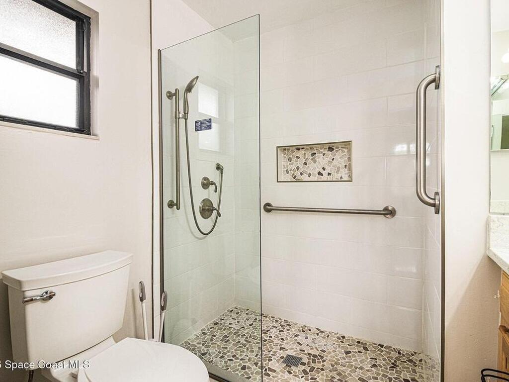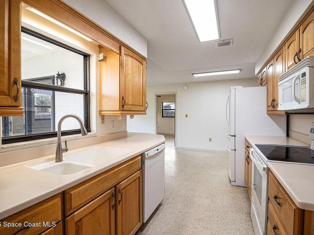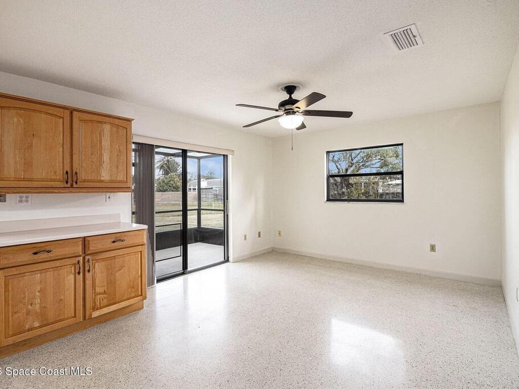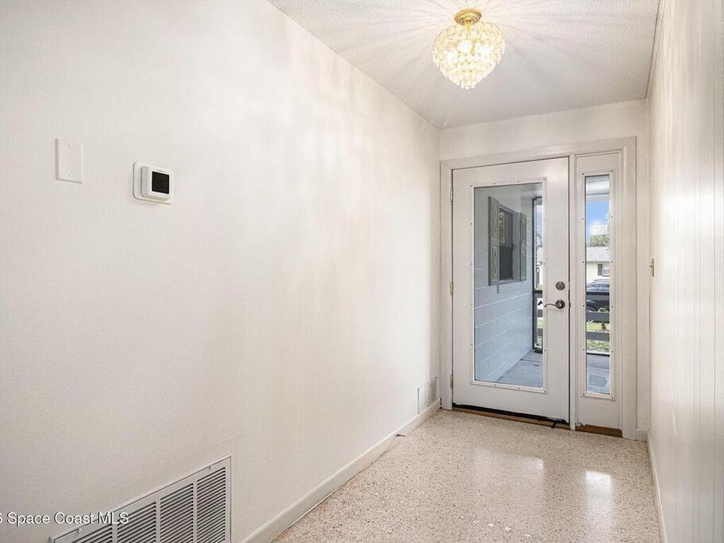 Wow! This spacious 5-bed, 2-bath home offers nearly 2, 300 sq ft of living space on a huge 1/3-acre lot, giving you room to relax, play, & enjoy true Florida living. The oversized yard is ideal for watching rocket launches, gardening, entertaining, or simply soaking up the sunshine. Freshly painted inside & out, this mid-century modern gem blends timeless character with thoughtful updates. Original terrazzo flooring adds classic charm, while stunning chandeliers elevate the home's unique style. The updated kitchen features Silestone countertops & ample workspace, perfect for everyday living and gatherings. The primary bathroom has been tastefully renovated with a beautiful stone-floor walk-in shower, creating a spa-like retreat; the current folding door accomodates wheelchair/walker access (can be easily converted back). Just minutes from Chain of Lakes Park & the Rails-to-Trails pathway. With its combination of size, style, updates, & prime outdoor space, this property move-in-ready.