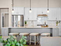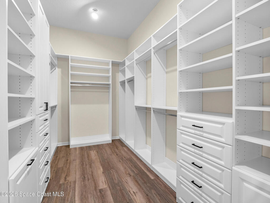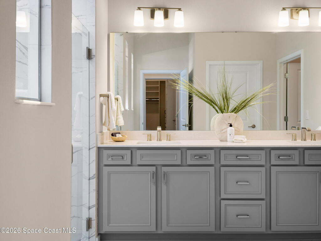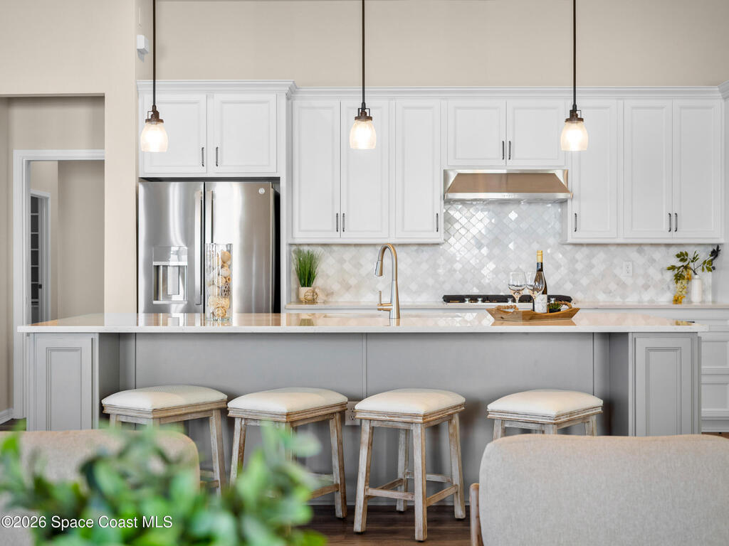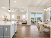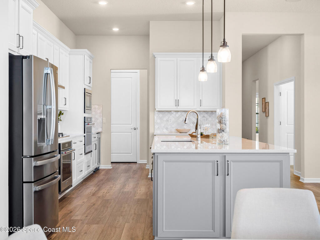 Live the Florida lifestyle in this stunning lakefront home located in the gated Del Webb at Viera 55+ community. Situated on a premium corner lot with peaceful water views, this move-in-ready residence offers an open-concept layout with high ceilings and luxury vinyl plank flooring throughout.The gourmet kitchen features quartz countertops, a 5-burner gas cooktop, double ovens, upgraded cabinetry, and a custom walk-in pantry--perfect for entertaining or everyday living. Three of the four bedrooms include private en-suite baths, providing comfort and privacy for owners and guests.Enjoy outdoor living on the screened lanai overlooking the lake, with a fenced yard and the rare opportunity to watch Cape Canaveral rocket launches from home. Additional highlights include custom closets throughout, upgraded lighting and fans, and an extended 3-car garage with epoxy flooring.