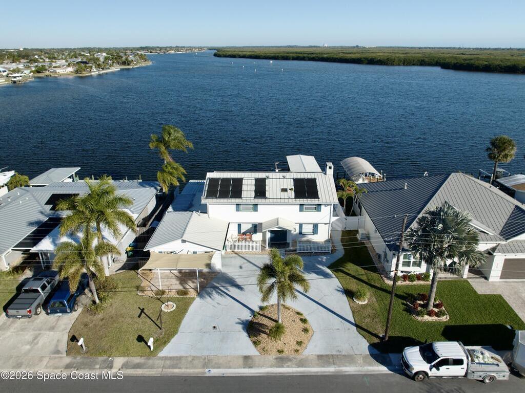 **professional pics coming soon**Set along the peaceful waters of Sykes Creek, this inviting 4 bedroom, 3.5 bath home is the perfect blend of comfort and laid-back coastal living. With a sturdy metal roof and a relaxed vibe, this home is all about enjoying life on the water. Boasting 74' of waterfront accompanied by 2 boat lifts , solar heated pool, hot tub, screened in porch gives you the desired Florida lifestyle us Brevardians know and love. Bonus points= home is PRIME location for the annual boat parade held every December.