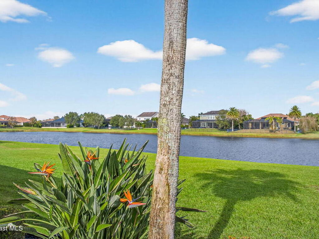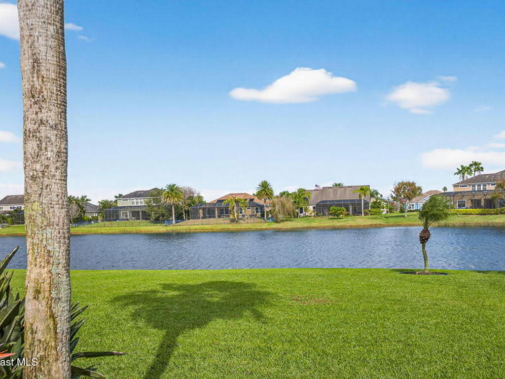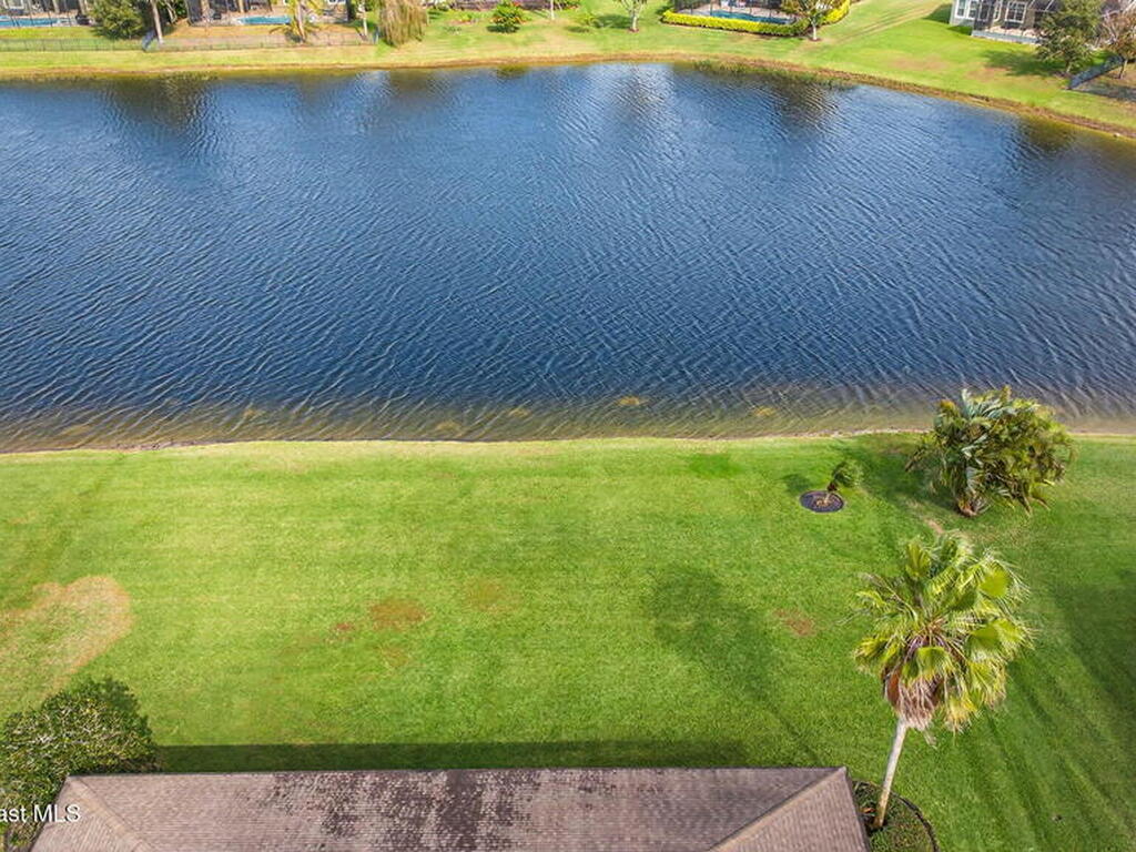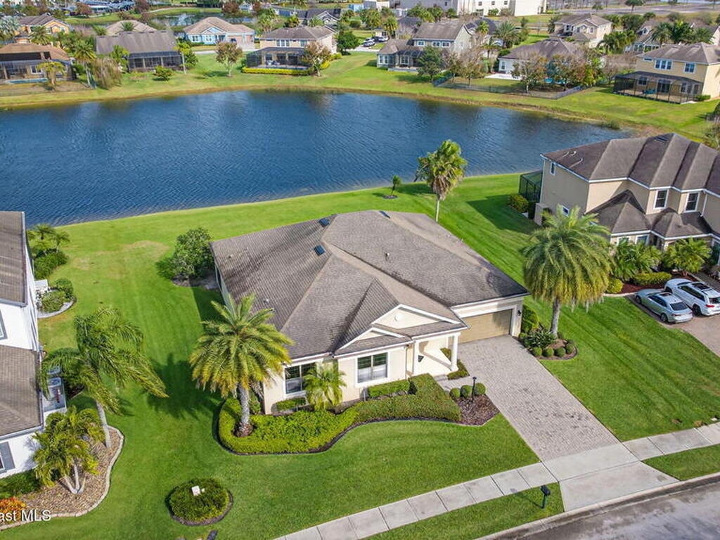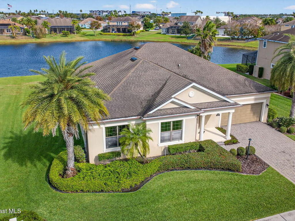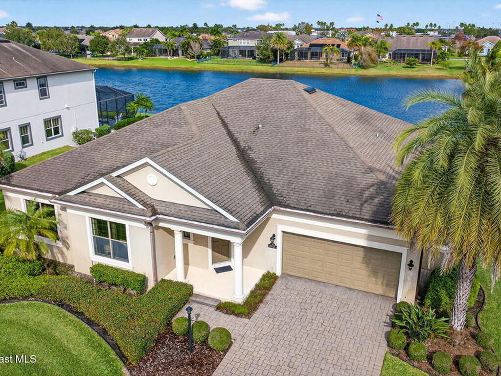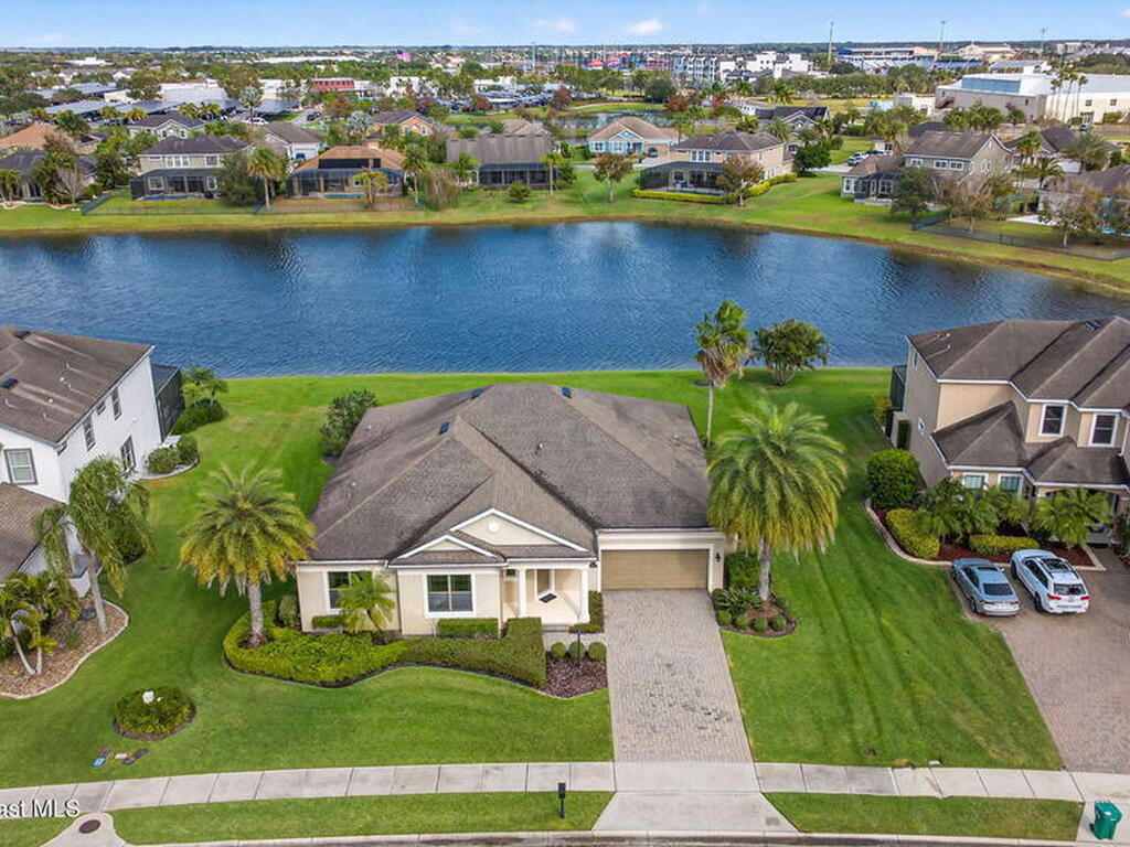 Immaculate! One owner, snowbird's 2nd home that shows like new. Located in the Cortona neighborhood of Viera, directly on the water. This property has a split plan with 4 bedrooms & 3 full baths. The family room & open kitchen combine to make a large living space to gather & entertain in. The home includes a formal dining room & separate living room that could easily be converted to a private office or den. See the floor plan in photos. Master suite boasts his/her walk-in closets, double sinks, garden tub & a shower. Many luxury features here, like 10-foot ceilings, high end finishes, gas tankless water heater, paver driveway & lush landscaping. The long lanai is screened with a peaceful lake view. The 581sf oversized garage has overhanging storage racks, a useful flex space for your golfcart, workshop or gym & a side service door out. Big backyard with room for a pool, AC is only 2 years old, windows are all hurricane impact rated & every appliance is included. 100% Move in Ready!