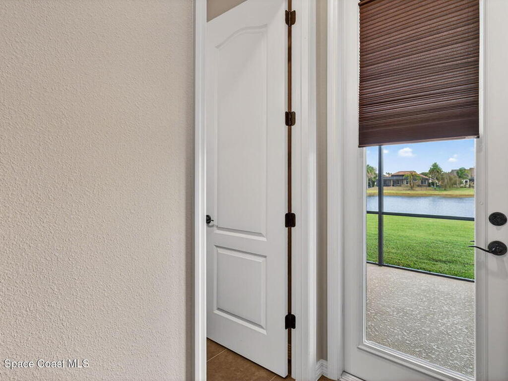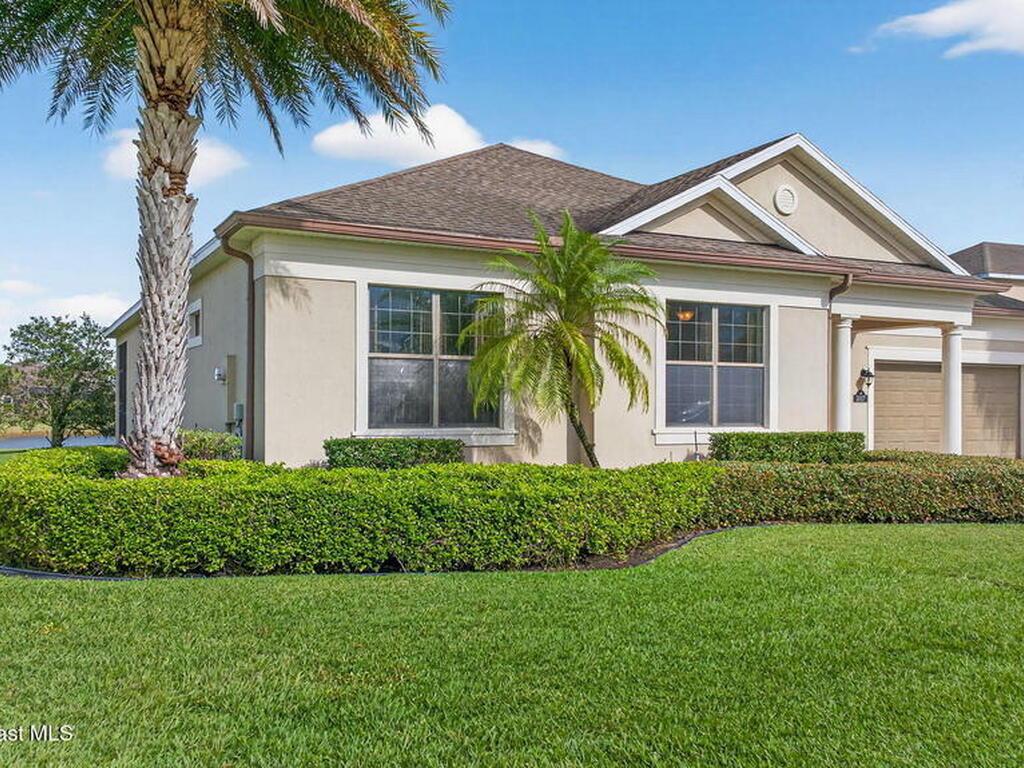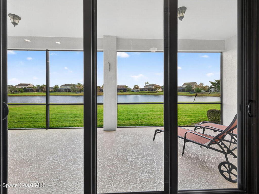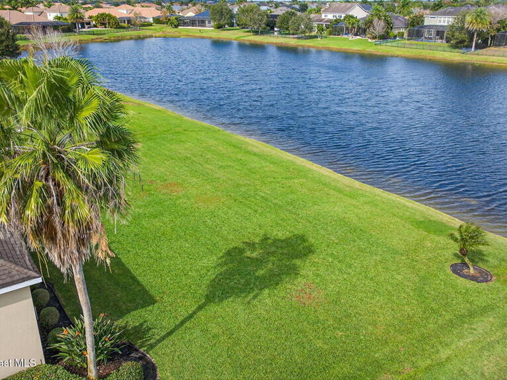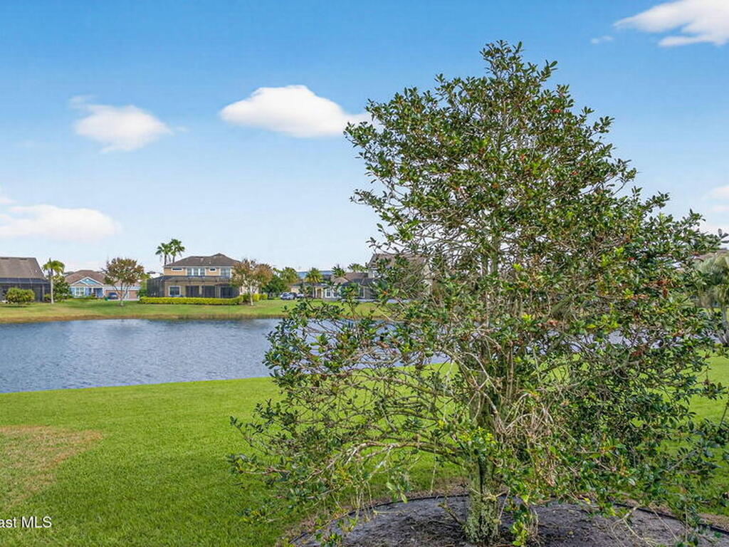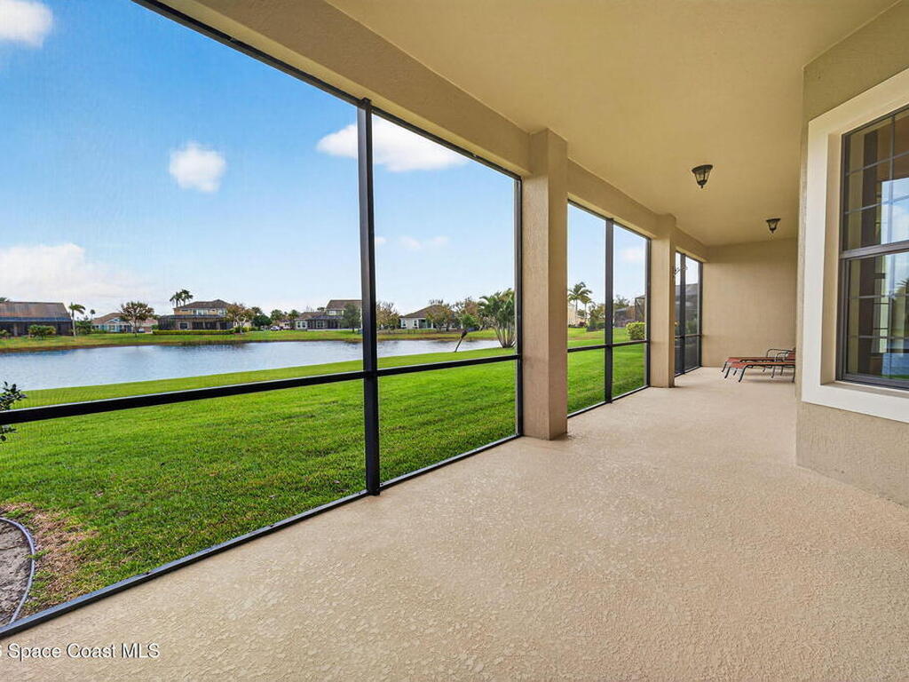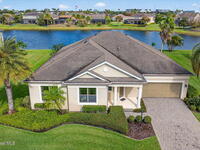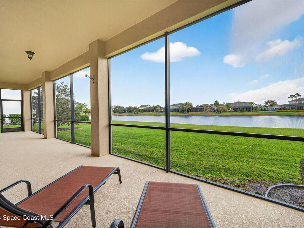 Immaculate! One owner, snowbird's 2nd home that shows like new. Located in the Cortona neighborhood of Viera, directly on the water. This property has a split plan with 4 bedrooms & 3 full baths. The family room & open kitchen combine to make a large living space to gather & entertain in. The home includes a formal dining room & separate living room that could easily be converted to a private office or den. See the floor plan in photos. Master suite boasts his/her walk-in closets, double sinks, garden tub & a shower. Many luxury features here, like 10-foot ceilings, high end finishes, gas tankless water heater, paver driveway & lush landscaping. The long lanai is screened with a peaceful lake view. The 581sf oversized garage has overhanging storage racks, a useful flex space for your golfcart, workshop or gym & a side service door out. Big backyard with room for a pool, AC is only 2 years old, windows are all hurricane impact rated & every appliance is included. 100% Move in Ready!
