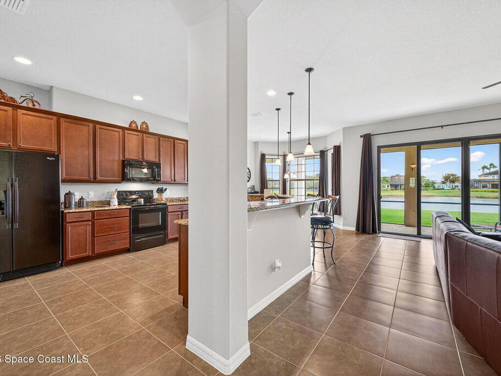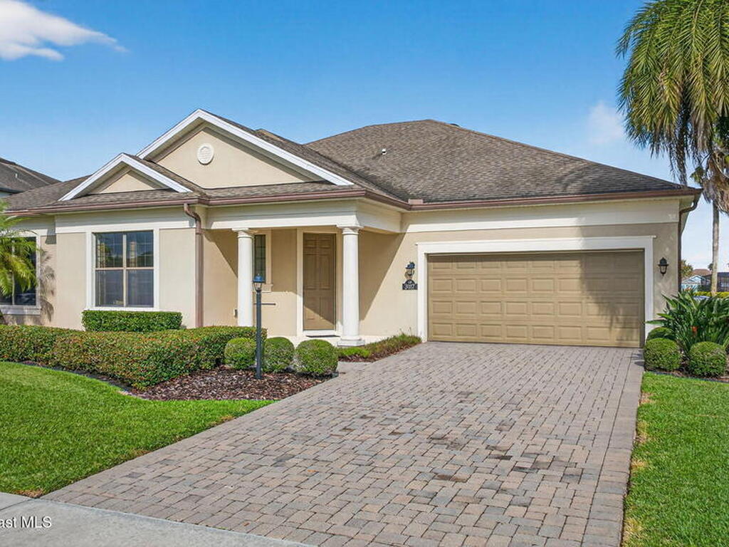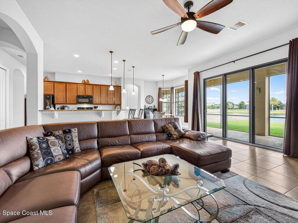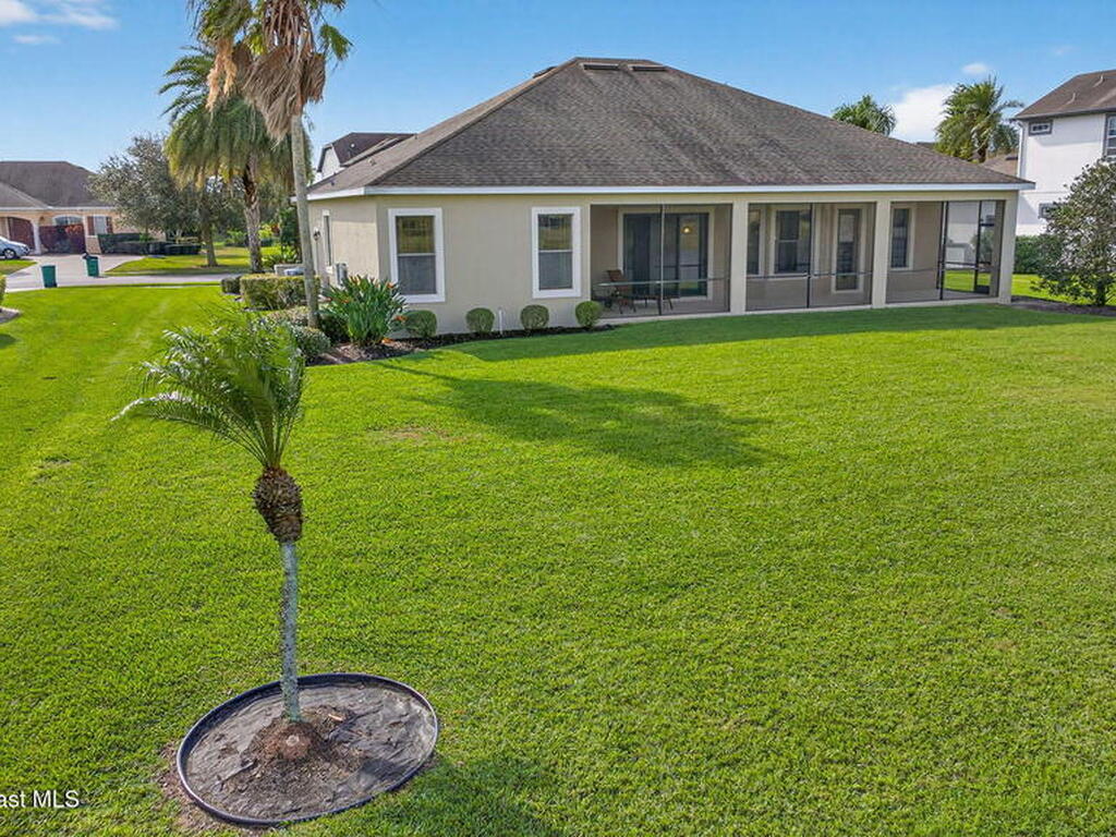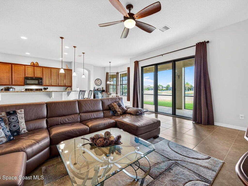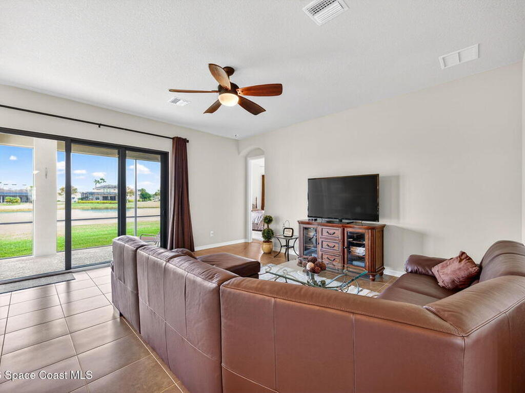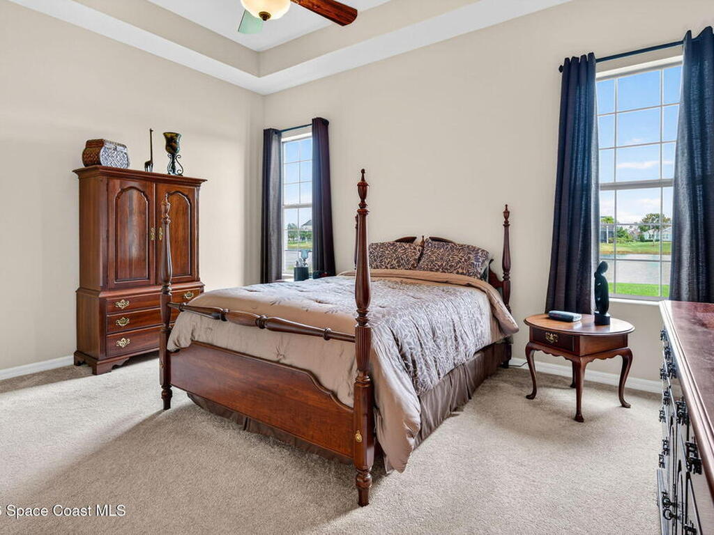 Immaculate! One owner, snowbird's 2nd home that shows like new. Located in the Cortona neighborhood of Viera, directly on the water. This property has a split plan with 4 bedrooms & 3 full baths. The family room & open kitchen combine to make a large living space to gather & entertain in. The home includes a formal dining room & separate living room that could easily be converted to a private office or den. See the floor plan in photos. Master suite boasts his/her walk-in closets, double sinks, garden tub & a shower. Many luxury features here, like 10-foot ceilings, high end finishes, gas tankless water heater, paver driveway & lush landscaping. The long lanai is screened with a peaceful lake view. The 581sf oversized garage has overhanging storage racks, a useful flex space for your golfcart, workshop or gym & a side service door out. Big backyard with room for a pool, AC is only 2 years old, windows are all hurricane impact rated & every appliance is included. 100% Move in Ready!