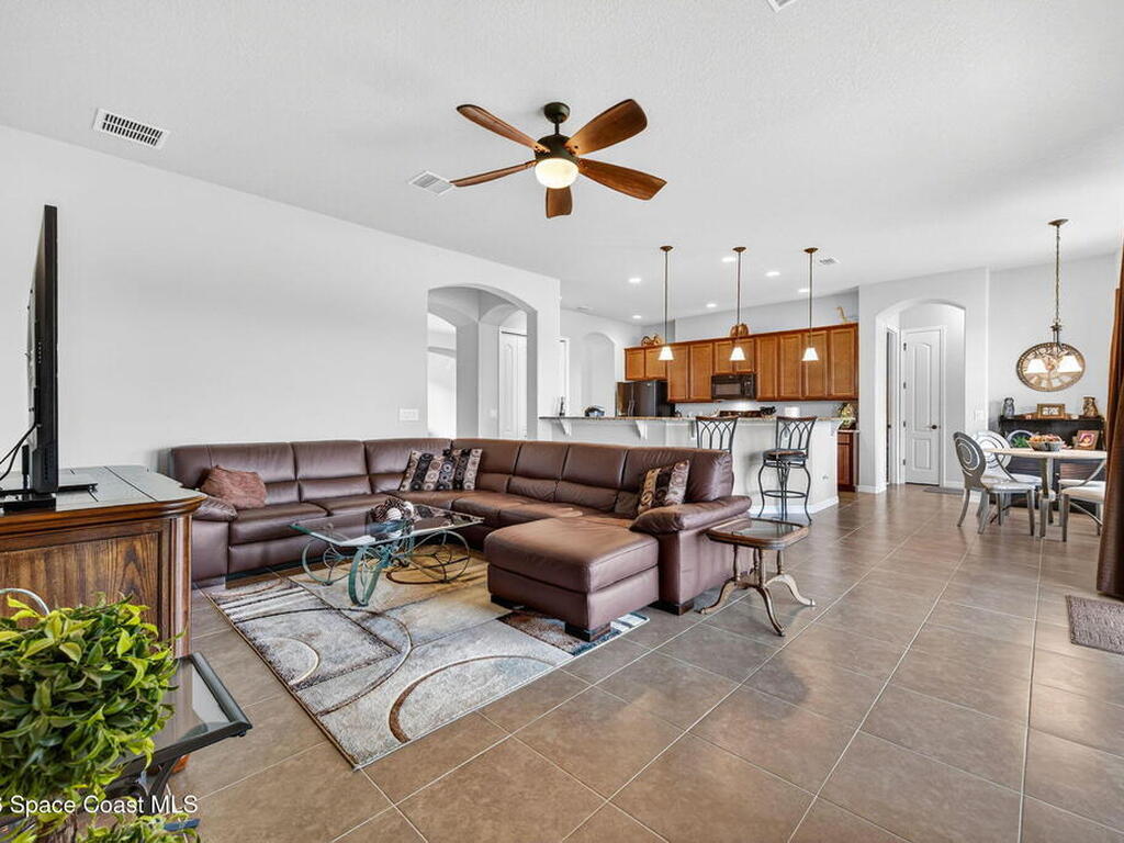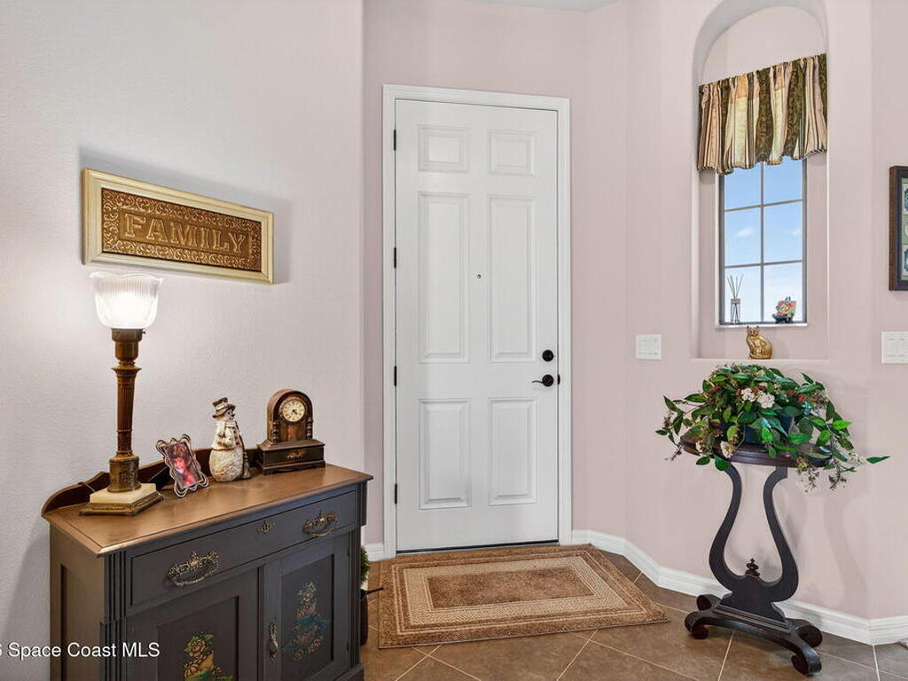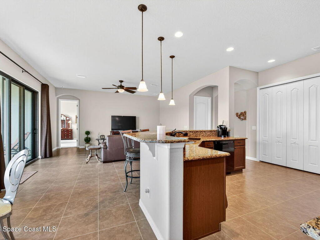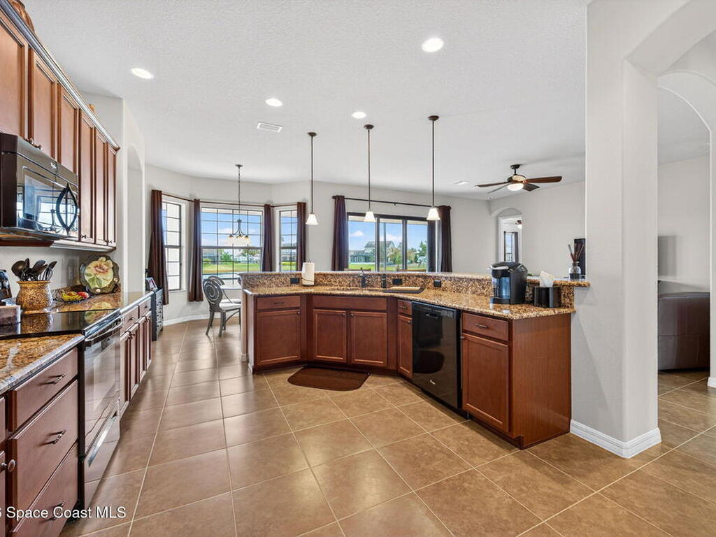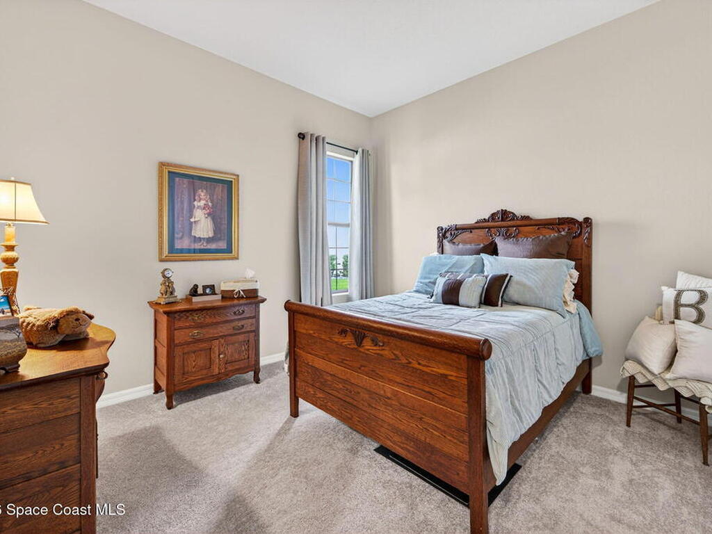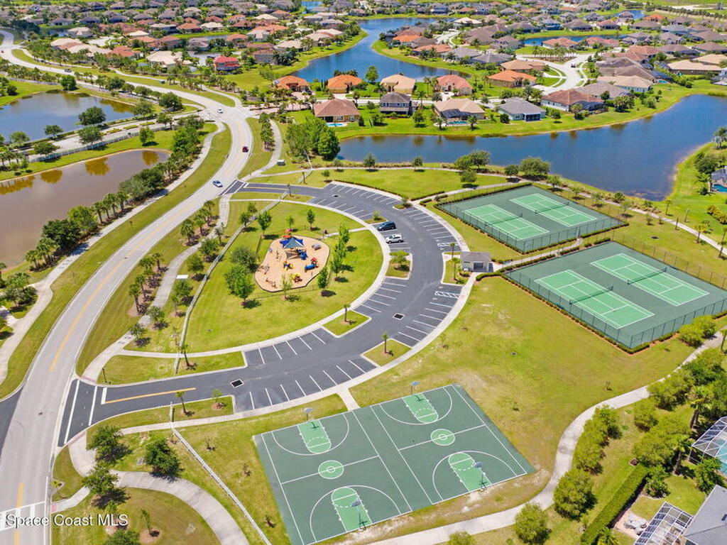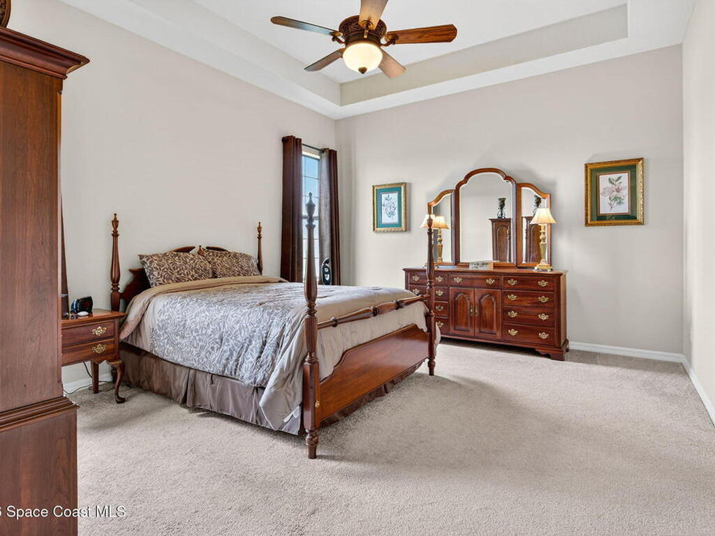 Immaculate! One owner, snowbird's 2nd home that shows like new. Located in the Cortona neighborhood of Viera, directly on the water. This property has a split plan with 4 bedrooms & 3 full baths. The family room & open kitchen combine to make a large living space to gather & entertain in. The home includes a formal dining room & separate living room that could easily be converted to a private office or den. See the floor plan in photos. Master suite boasts his/her walk-in closets, double sinks, garden tub & a shower. Many luxury features here, like 10-foot ceilings, high end finishes, gas tankless water heater, paver driveway & lush landscaping. The long lanai is screened with a peaceful lake view. The 581sf oversized garage has overhanging storage racks, a useful flex space for your golfcart, workshop or gym & a side service door out. Big backyard with room for a pool, AC is only 2 years old, windows are all hurricane impact rated & every appliance is included. 100% Move in Ready!