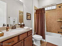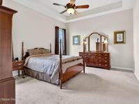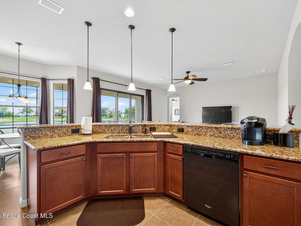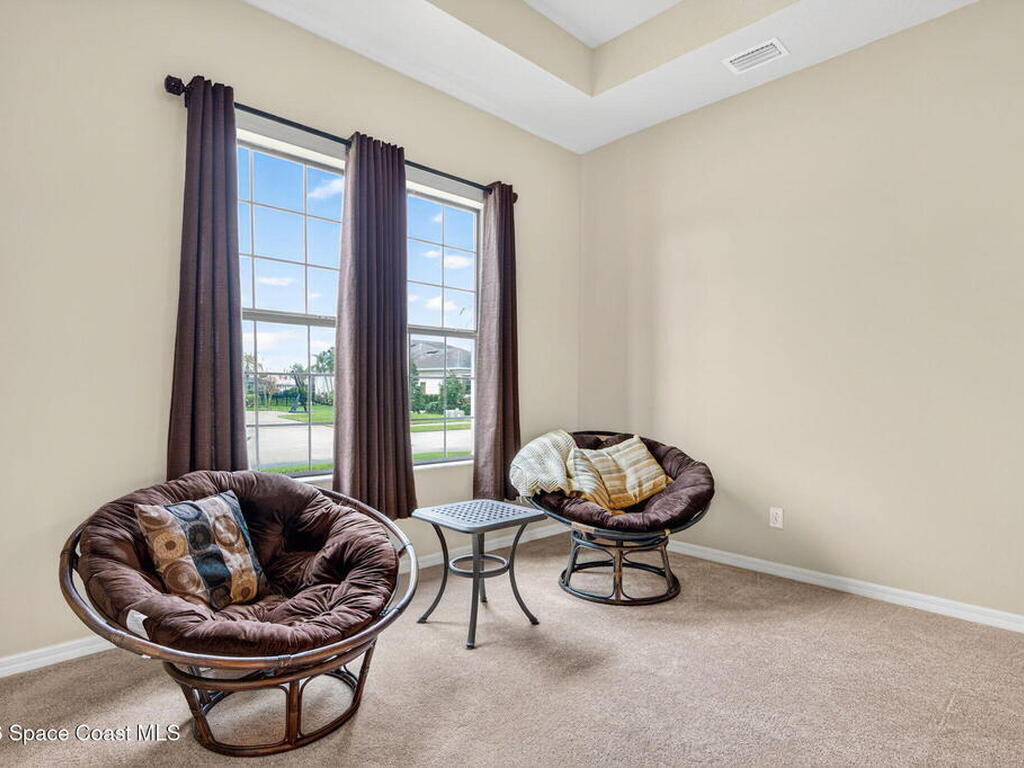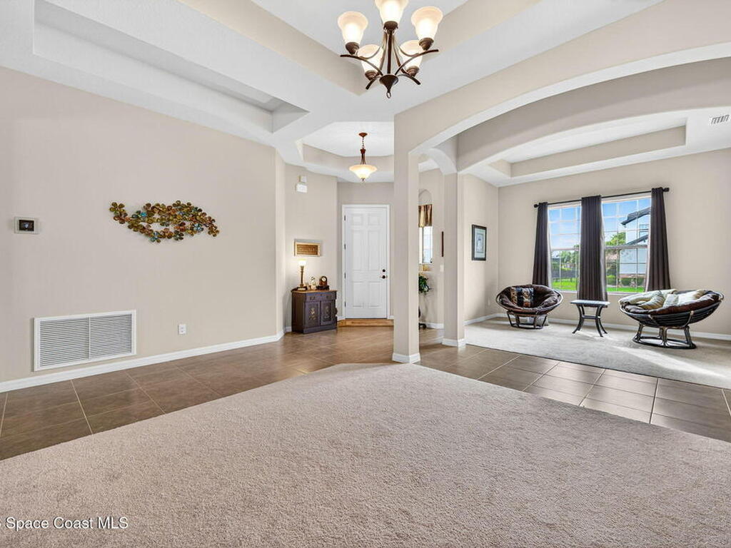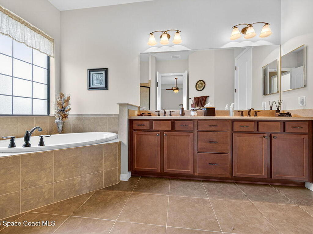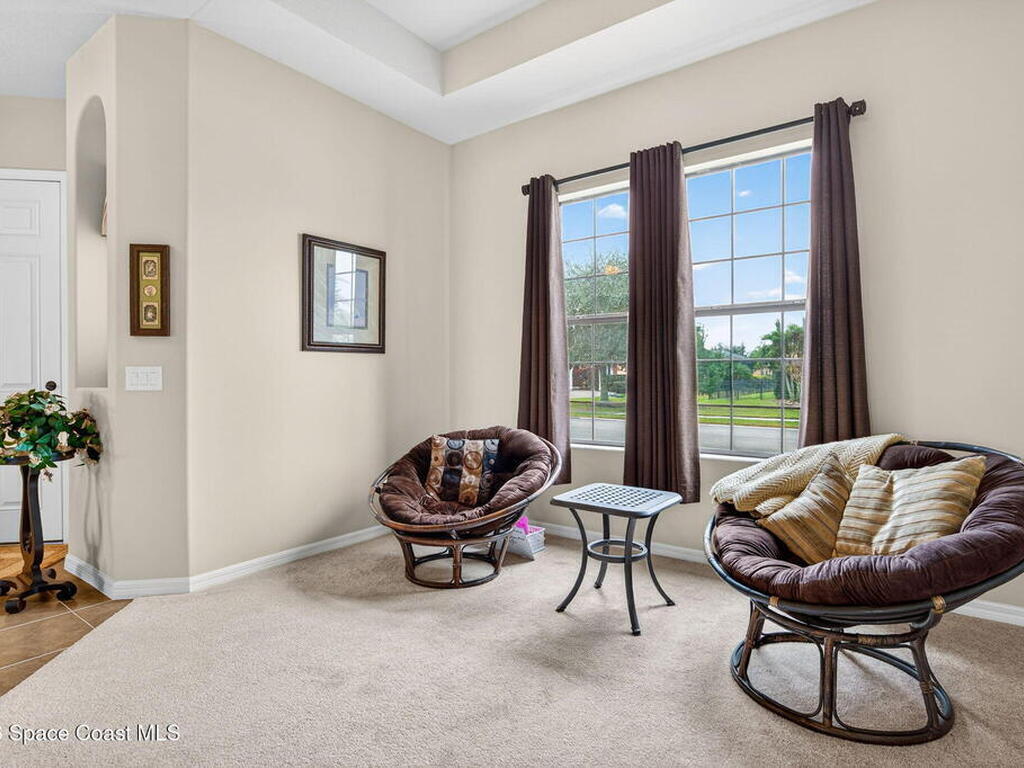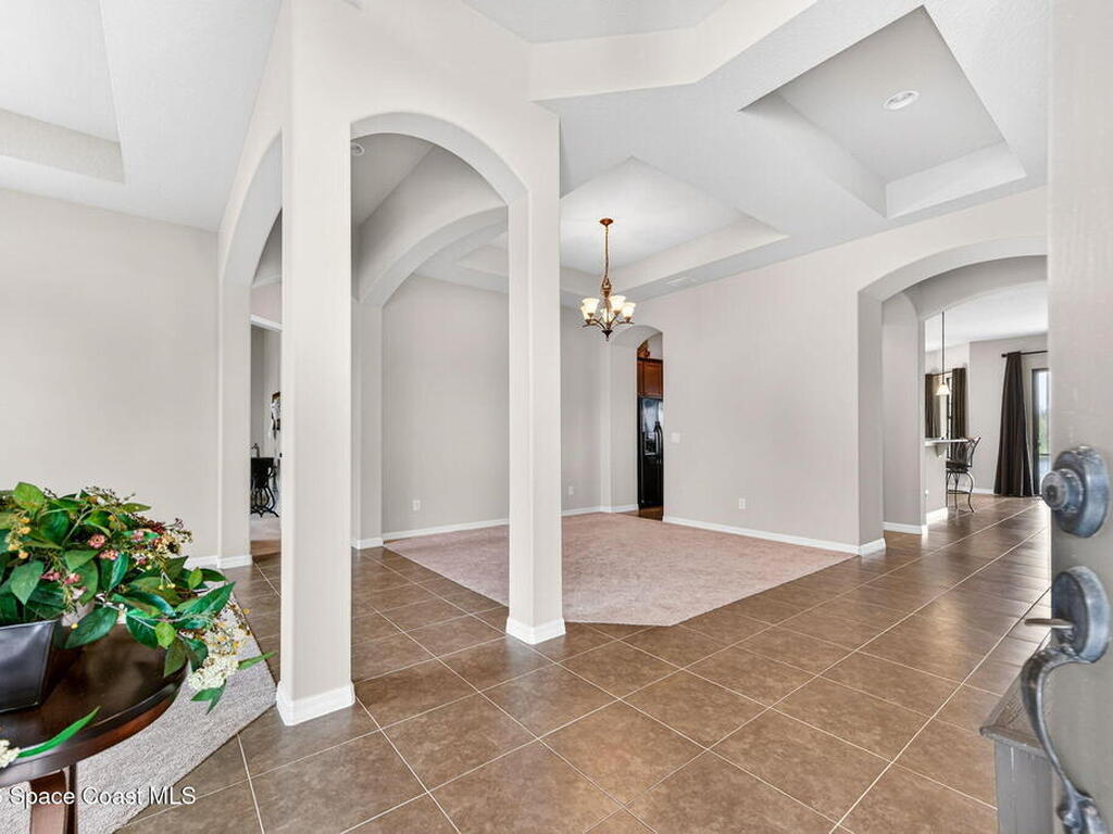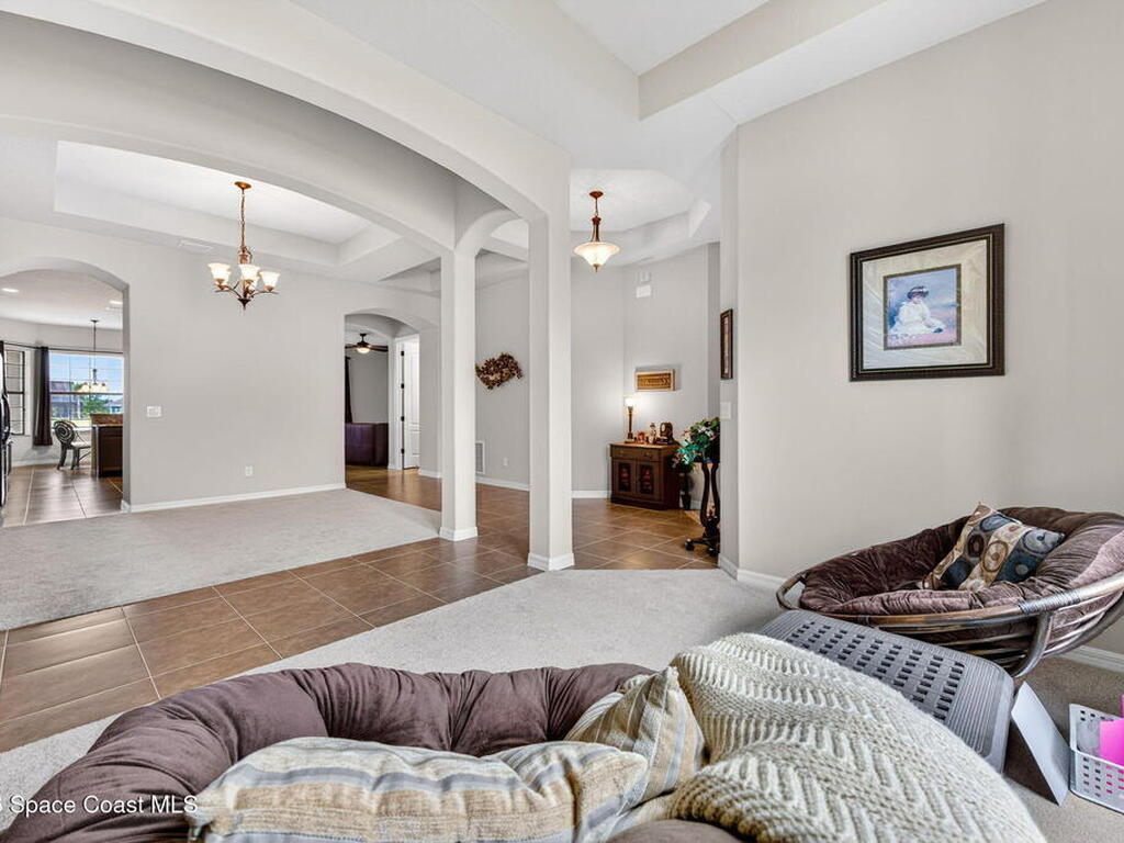 Immaculate! One owner, snowbird's 2nd home that shows like new. Located in the Cortona neighborhood of Viera, directly on the water. This property has a split plan with 4 bedrooms & 3 full baths. The family room & open kitchen combine to make a large living space to gather & entertain in. The home includes a formal dining room & separate living room that could easily be converted to a private office or den. See the floor plan in photos. Master suite boasts his/her walk-in closets, double sinks, garden tub & a shower. Many luxury features here, like 10-foot ceilings, high end finishes, gas tankless water heater, paver driveway & lush landscaping. The long lanai is screened with a peaceful lake view. The 581sf oversized garage has overhanging storage racks, a useful flex space for your golfcart, workshop or gym & a side service door out. Big backyard with room for a pool, AC is only 2 years old, windows are all hurricane impact rated & every appliance is included. 100% Move in Ready!