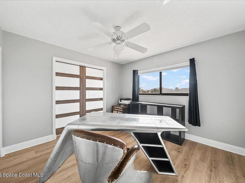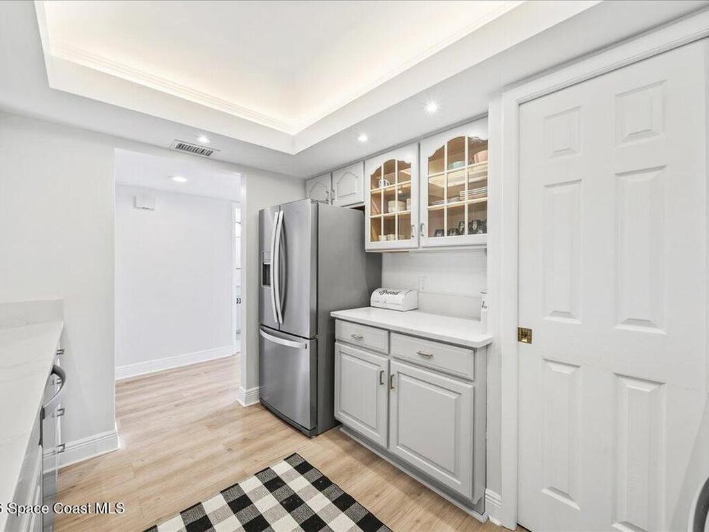 Welcome to your Banana River sanctuary! This beautifully updated 3-bedroom, 2-bath waterfront condo at Colonial House offers 1, 632 sq ft of coastal living with front-row seats to rocket launches and wildlife. Watch dolphins and manatees glide by from your private screened balcony overlooking the navigable canal to the Banana River. Inside, you'll find a bright open floor plan with luxury vinyl flooring throughout, a chef's kitchen with quartz countertops and stainless appliances, elegant shiplap accents, modern barn doors, and two completely renovated bathrooms with marble-look tile and custom vanities. The primary suite boasts a spa-inspired ensuite with dual vanities. Impact-rated windows and sliders provide peace of mind and energy efficiency. Enjoy resort-style amenities including community pool, private boat docks with slip availability, fishing pier, and kayak storage. Your private 1-car garage plus ample guest parking complete this waterfront retreat. Perfect for full-time