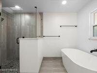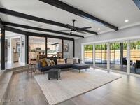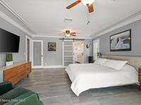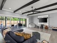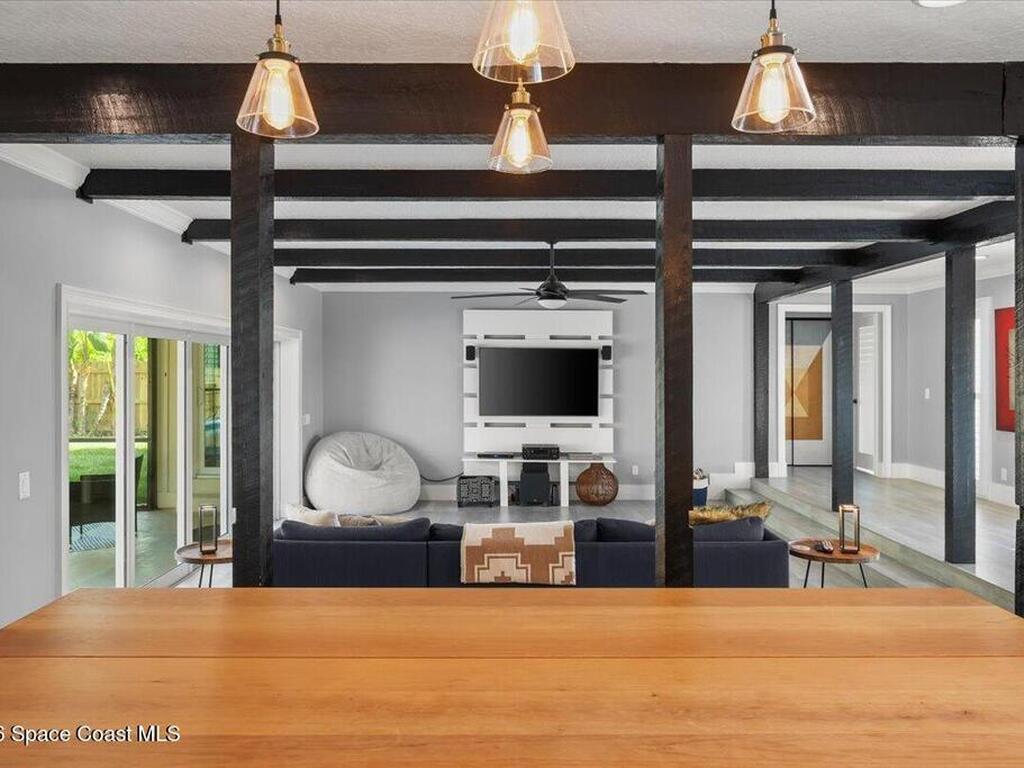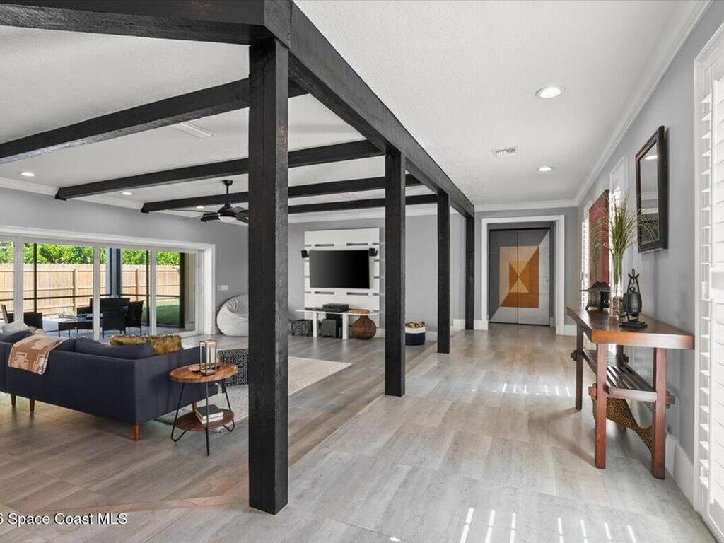 Welcome to your beachside oasis--thoughtfully and extensively updated to offer modern comfort with true peace of mind. This home showcases a newer roof, upgraded PEX plumbing, impact-rated features, fully upgraded air conditioning, and a long list of additional high-quality improvements throughout. The split, open-concept floor plan is both functional and inviting, featuring spacious bedrooms, remodeled bathrooms, custom closet built-ins, and a versatile bonus flex room ideal for a home office or gym.Designed for effortless indoor-outdoor living, the home opens to a private backyard retreat with a large, beautifully updated pool and resurfaced deck --perfect for entertaining or relaxing after a day at the beach. Additional highlights include a circular drive with ample parking, boat/RV pad, extra spacious garage, new fencing, and an outdoor shower. With modern finishes and meticulous care evident at every turn, this coastal retreat located between the causeways is one of a kind!