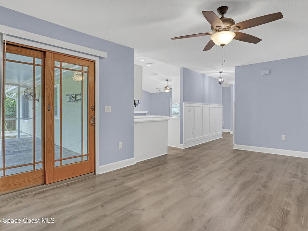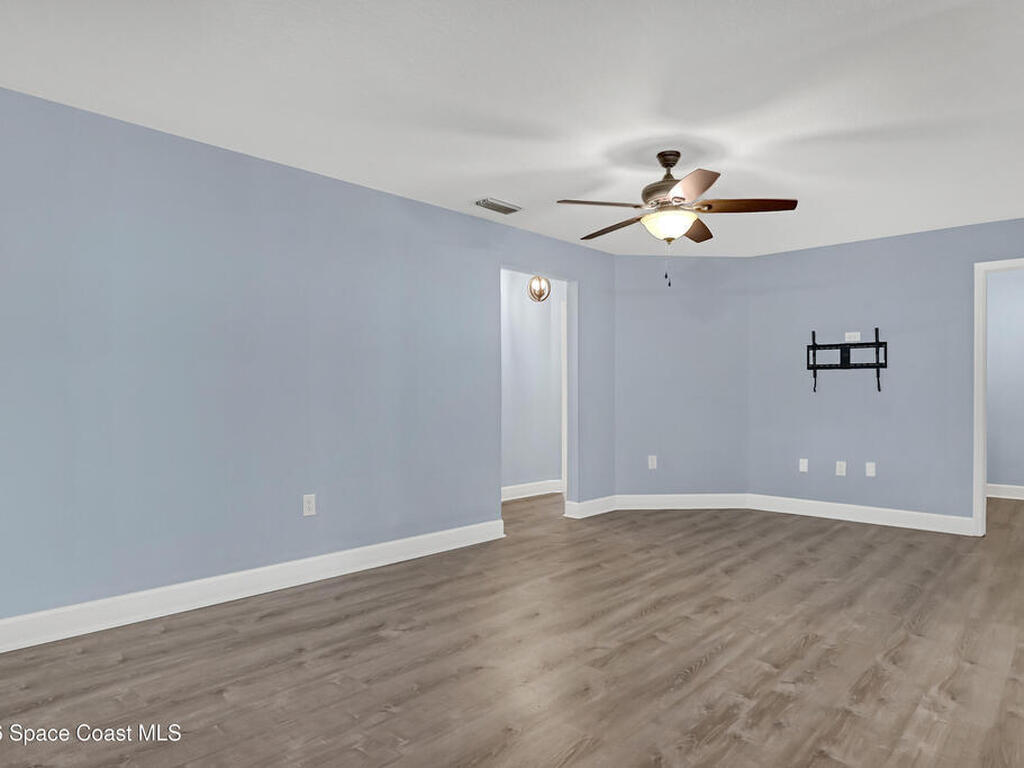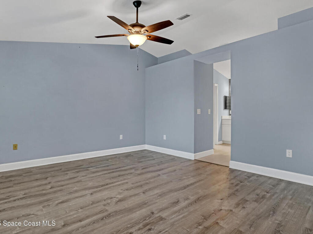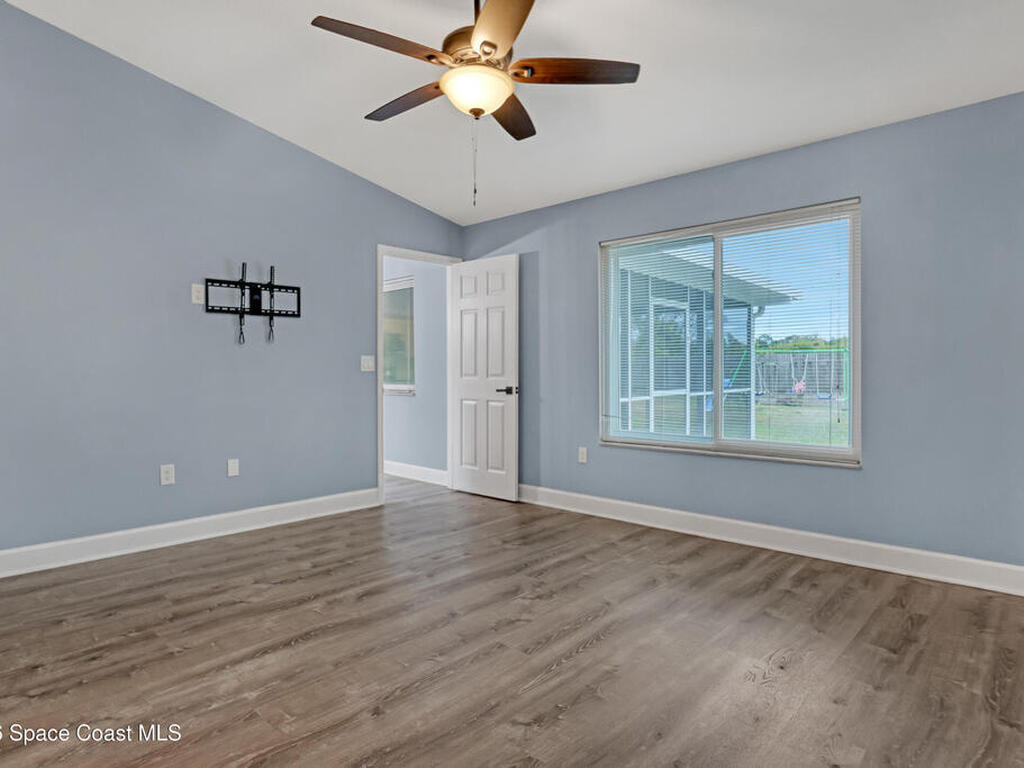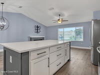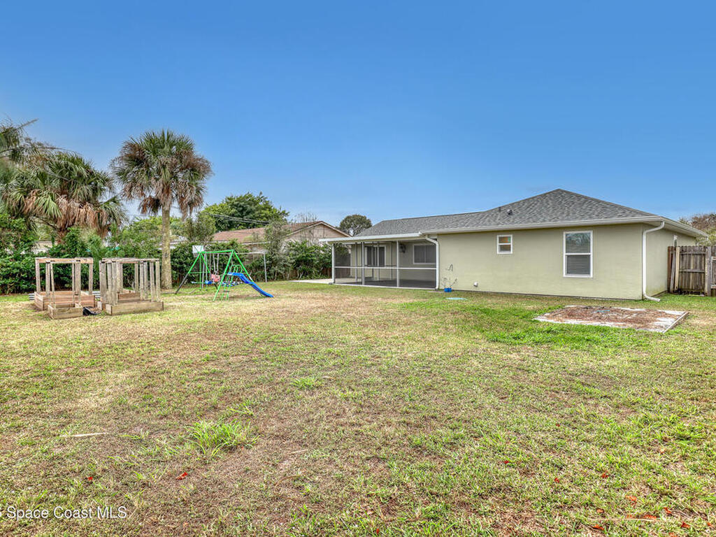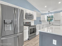 This tastefully renovated gem is an absolute must see, just like new, except with the charm already included! Featuring a split floor plan with vaulted ceilings and two separate living areas, a gorgeous kitchen with a large center island & quartz counter tops, open to both family & dining room areas, a spacious master suite with his & hers walk-in closets, quarts tops & double sinks. A second family room is centered around secondary bedrooms (with walk-in closets), common bathroom & laundry room, with Anderson sliders leading to an impressive screened porch, with plenty of room for a hot tub inside or out, on the extended slab. The huge fenced back yard offers privacy and plenty of room for a pool. 2023 Roof, 2023 AC, 2023 Screened porch, 2023 Driveway Extension & Back Patio Slab, 2021 Impact Windows & Door, 2021 Garage Door. Conveniently located close to schools, shopping, resturants & services on both Malabar Rd & Palm Bay Rd. A quick drive to the Indian River and the local beaches