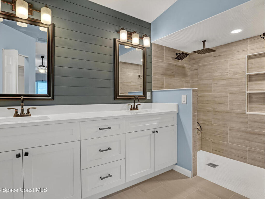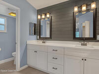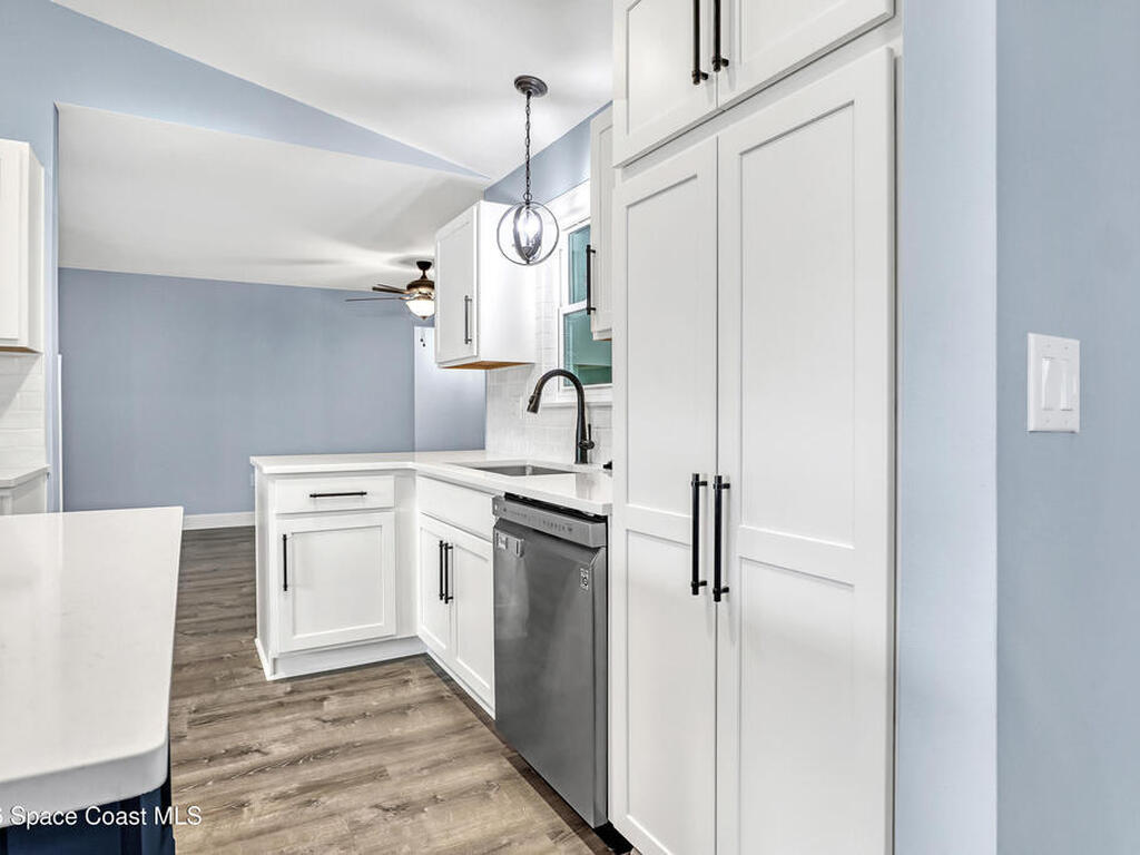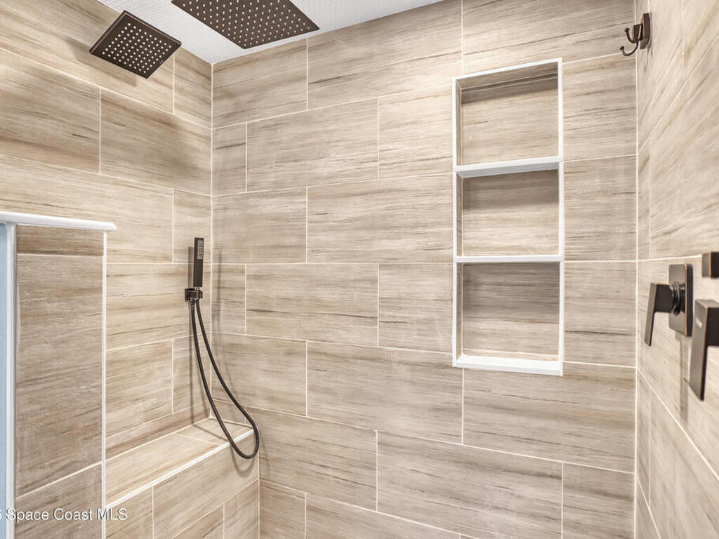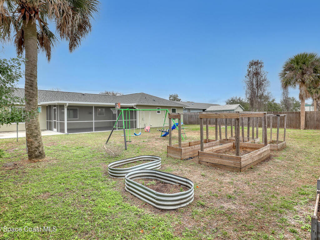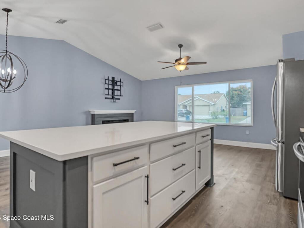 This tastefully renovated gem is an absolute must see, just like new, except with the charm already included! Featuring a split floor plan with vaulted ceilings and two separate living areas, a gorgeous kitchen with a large center island & quartz counter tops, open to both family & dining room areas, a spacious master suite with his & hers walk-in closets, quarts tops & double sinks. A second family room is centered around secondary bedrooms (with walk-in closets), common bathroom & laundry room, with Anderson sliders leading to an impressive screened porch, with plenty of room for a hot tub inside or out, on the extended slab. The huge fenced back yard offers privacy and plenty of room for a pool. 2023 Roof, 2023 AC, 2023 Screened porch, 2023 Driveway Extension & Back Patio Slab, 2021 Impact Windows & Door, 2021 Garage Door. Conveniently located close to schools, shopping, resturants & services on both Malabar Rd & Palm Bay Rd. A quick drive to the Indian River and the local beaches