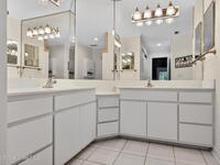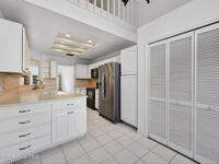 This spacious townhome offers the feel of a single family home without all of the maintenance! Arched entry to a charming courtyard leads to the front door which opens to a defined foyer. Large eat-in kitchen with loads of white raised panel cabinets and solid surface countertops. Kitchen is open to the large living / dining great room combo with ceilings soaring to the second floor! Large First floor primary suite with a sitting area attached offers many possibilities. Primary bath with Large double sink vanity, cultured marble tops, and glass door to a walk in shower. His and hers closets too! First floor laundry w/updated tile flooring, and lots of cabinets. Upstairs you'll find a huge loft, 2 more bedrooms (one with its own private balcony), and another full bath. Parkside is adjacent to Gleason Park and a short bike ride to the beach!