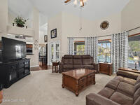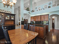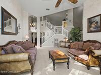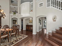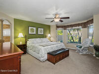 **Gorgeous, Elegant & Spacious best describe this Luxuriously-Appointed 4 Bedrm S Merritt Island Home Located in very Desirable WATERFRONT Community w/its own DOCK! Grand Entry Greets You w/Stunning Lead Glass Doors, Custom Brazilian Cherry Wood Floors, Impressive Winding Staircase & Living Rm Rotunda overlooking Peaceful Pond. Family Rm Offers Relaxing Moments w/the Remote Fireplace. Cathedral Ceilings surround the Spacious Rms & Chef's Kitchen features Premium Stainless Applcs & Granite Countertops while acting as the Central Hub for Entertaining/Family time while Enjoying Sparkling Pool Views just beyond. All Bedrms are a Generous size & offer Deep Closets too. Beautiful Bathrms have Spa-style touches incl/Jetted Tub in Master Bath. This Former MODEL Home is Adorned throughout w/Custom Accents, incl/ Molding, Columns & Design. LG Pavered Drivewy Welcomes You Home or Offers Room for Your Guests to Stay Awhile. NEW 2023 ROOF, 2 AC's, IMPACT Windows, Etc-Ask for Detailed Features List
