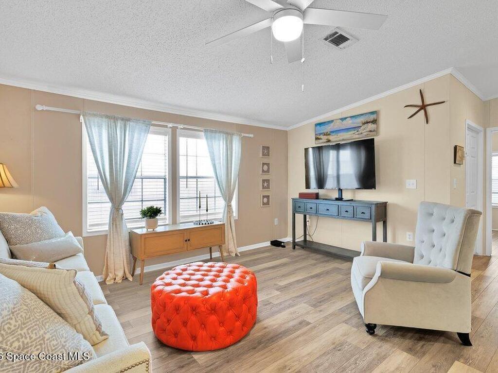 Enjoy the Barefoot Bay lifestyle in this beautifully maintained 2005 furnished home situated on a spacious lot. Offering 1, 505 sq ft of living space, this desirable split floor plan features 2 bedrooms plus a versatile den that can easily serve as a third bedroom or home office. Recent updates include LVP flooring throughout and a durable 2019 metal roof. The home also boasts an inside laundry room, generous closets, a large pantry, and abundant storage. The kitchen is equipped with stainless steel appliances and a water filtration system, making it both stylish and functional. Relax and unwind on the screened patio, perfect for enjoying Florida's outdoor living. The oversized lot provides ample space for gardening or outdoor projects.Barefoot Bay is an all-ages, golf-cart-friendly community offering resort-style amenities including three swimming pools, golf, pickleball, a fishing pier, private beach access, and a wide variety of clubs and recreational activities. Pet Friendly