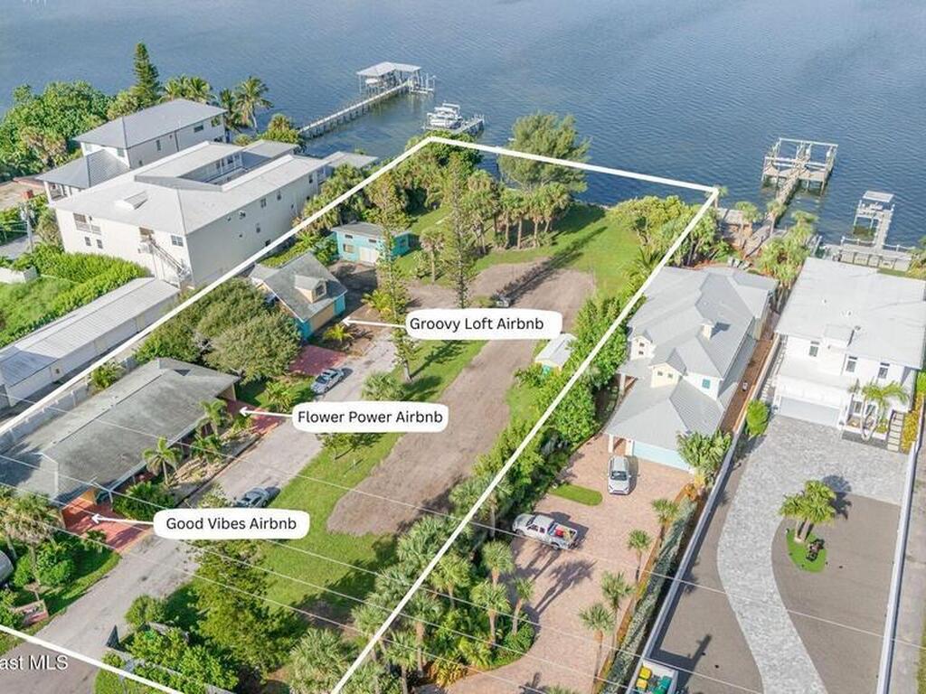 Rare 1+ acre DIRECT riverfront opportunity in South Cocoa Beach. Perfectly positioned between the Atlantic Ocean and the Banana River, this exceptional parcel offers approximately 150 feet of waterfront and flexible residential zoning. Ideal for a luxury waterfront estate, a multi-home development, or a residential project of up to 15 units. The south portion of the property includes three active short-term rental structures with potential to renovate, expand rental income, or repurpose as storage or hobby spaces. The north portion remains a vacant, build-ready lot, offering endless development options. Surrounded by premier riverfront homes, this tranquil setting delivers privacy while remaining close to dining, shopping, and major airports. Enjoy quiet, wide beaches and serene river living with direct access to the Intracoastal Waterway and ocean beyond. A truly unique South Cocoa Beach offering with exceptional investment and lifestyle potential.