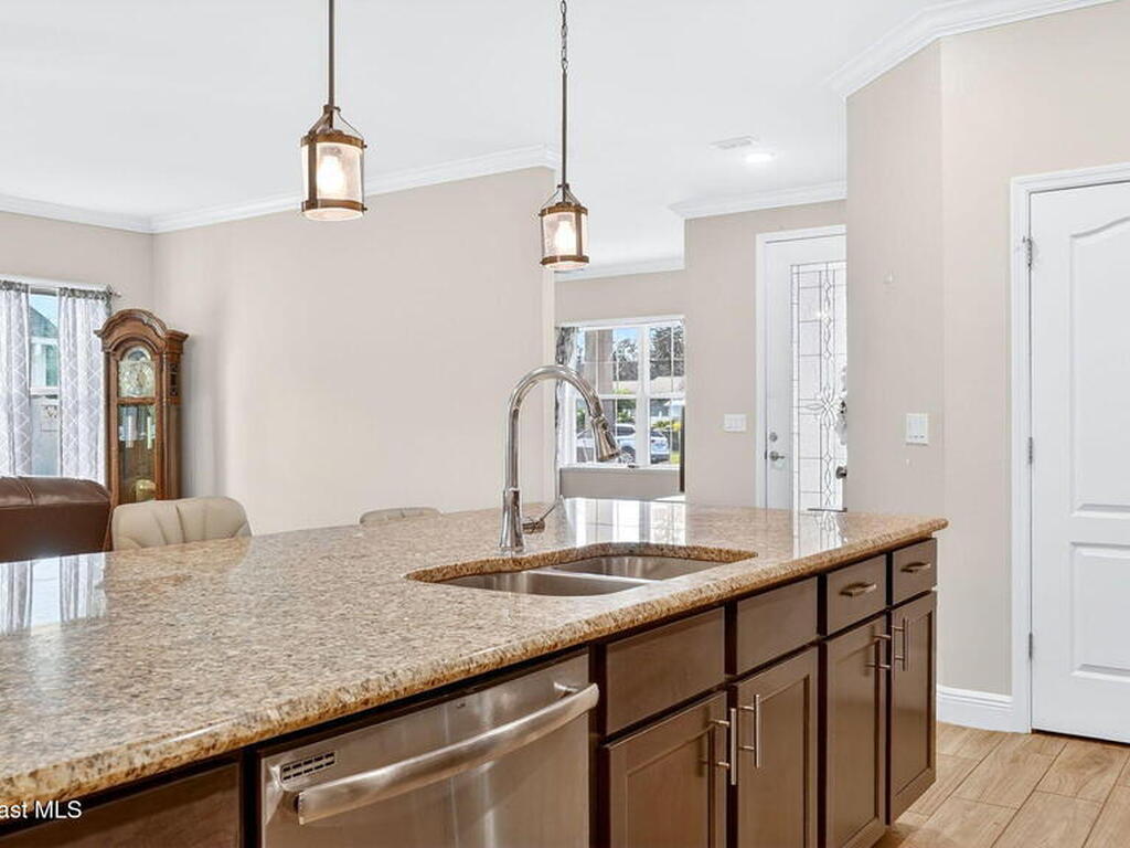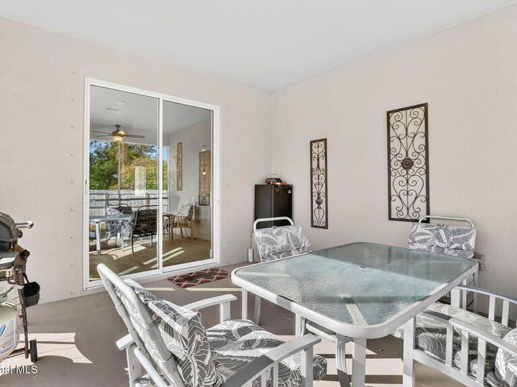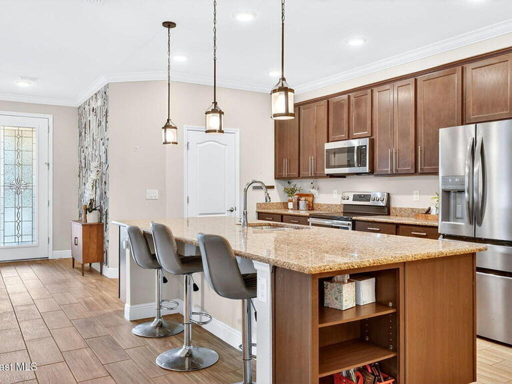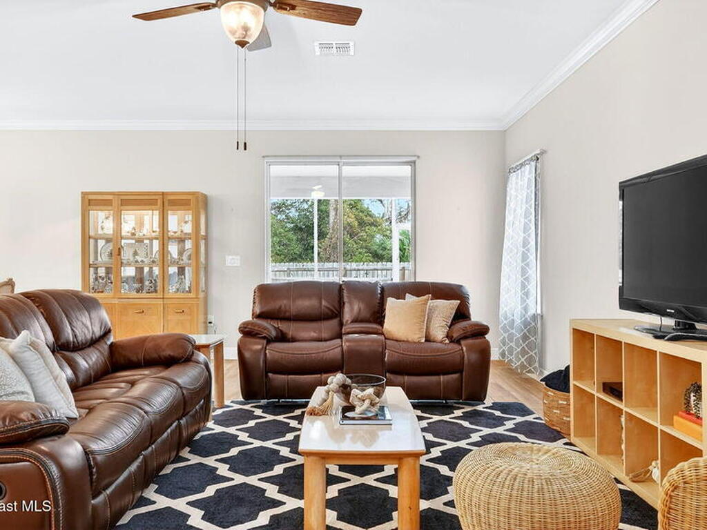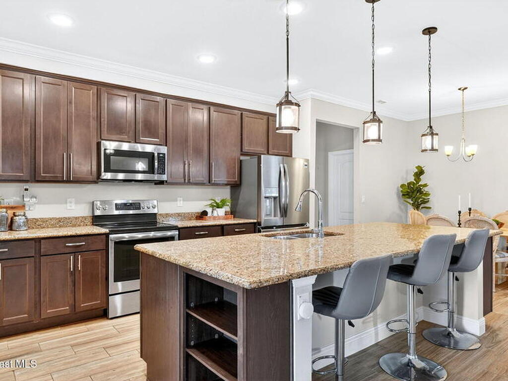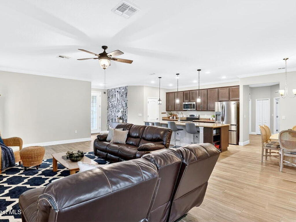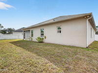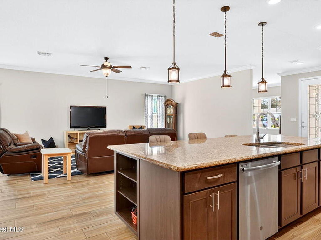 This is the home you've been waiting for! Built in 2019, this well-maintained home offers a 3-car garage, modern finishes, open-concept living & desirable Space Coast location. Wood-look tile flooring flows thru-out the main living areas, connecting living, dining, & kitchen spaces ideal for both everyday living & entertaining. The kitchen is thoughtfully designed w/42-inch cabinets, granite countertops & generous workspace. The spacious primary bedroom suite features tray ceilings, an oversized closet, & a beautiful bath w/tiled shower. Two additional guest bedrooms, guest bath & flex room provide plenty of space for family, guests or a home office. Situated on a .24-acre lot, the property offers a spacious outdoor setting w/fully fenced yard featuring vinyl fencing, providing privacy & room for pets, play or Future Pool. Conveniently located near I-95 for easy Orlando commute & just Mins from NASA, SpaceX & major aerospace employers. Mins to beaches, shopping, Local Eats & Schools!