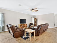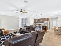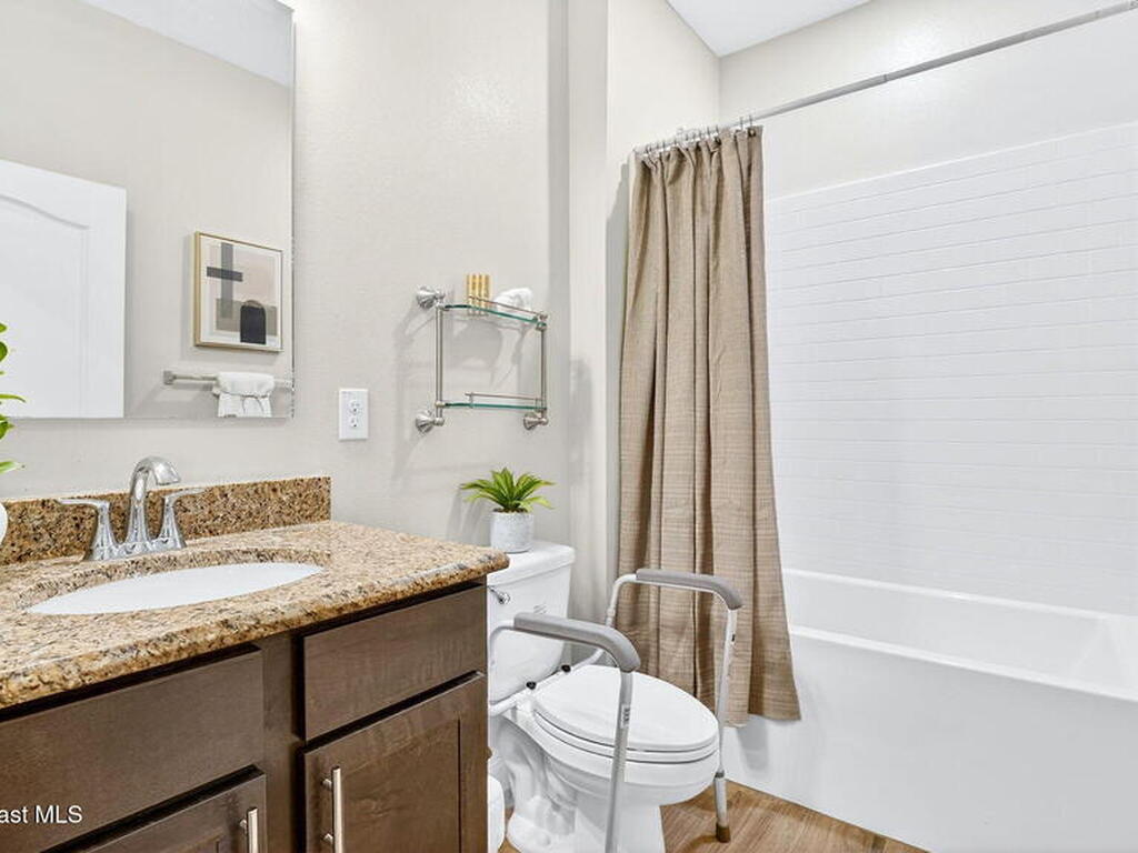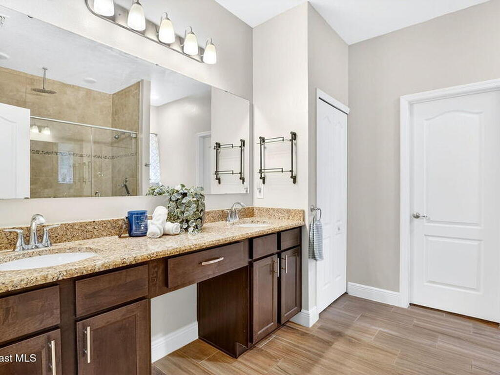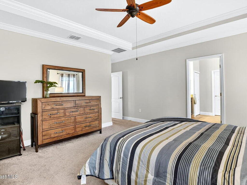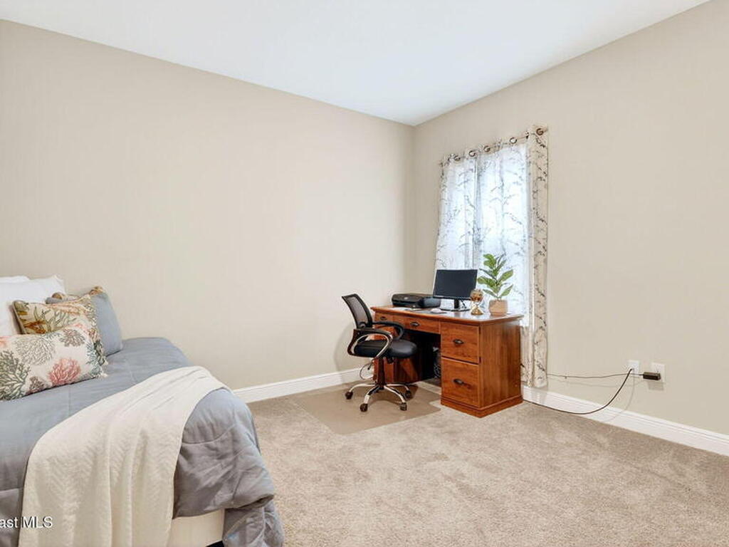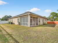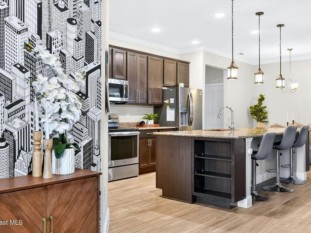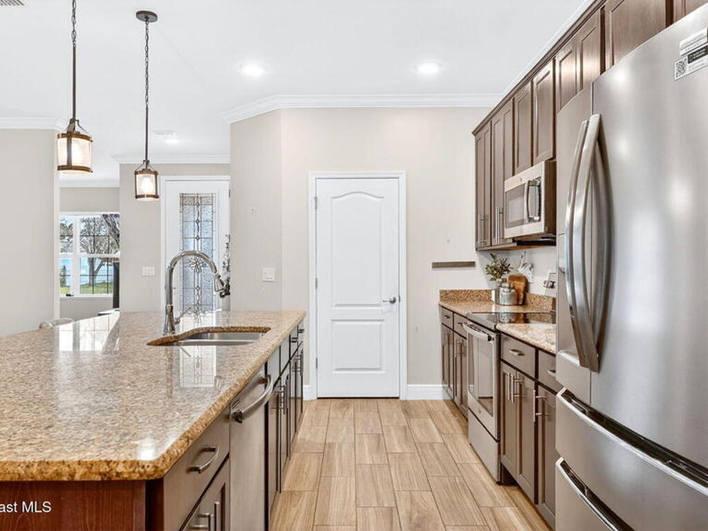 This is the home you've been waiting for! Built in 2019, this well-maintained home offers a 3-car garage, modern finishes, open-concept living & desirable Space Coast location. Wood-look tile flooring flows thru-out the main living areas, connecting living, dining, & kitchen spaces ideal for both everyday living & entertaining. The kitchen is thoughtfully designed w/42-inch cabinets, granite countertops & generous workspace. The spacious primary bedroom suite features tray ceilings, an oversized closet, & a beautiful bath w/tiled shower. Two additional guest bedrooms, guest bath & flex room provide plenty of space for family, guests or a home office. Situated on a .24-acre lot, the property offers a spacious outdoor setting w/fully fenced yard featuring vinyl fencing, providing privacy & room for pets, play or Future Pool. Conveniently located near I-95 for easy Orlando commute & just Mins from NASA, SpaceX & major aerospace employers. Mins to beaches, shopping, Local Eats & Schools!