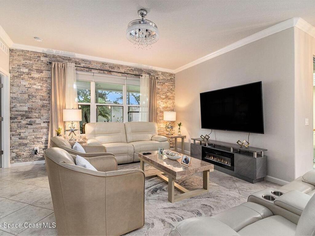 This stunning 4/2/2 home is situated in a desirable location and offers the ideal combination of comfort, style, and care. Enjoy peaceful moments on the large screened porch, thoughtfully designed for relaxation and gatherings. The home has been beautifully upgraded with SOLAR PANELS paid in full, new ceramic flooring, ''RenewWater whole-home salt-based water softener plus under-sink reverse osmosis drinking water system.'', accordion shutters, gutters, eye-catching crown molding, beautiful fixtures and gorgeous stone accent walls that add character and charm. The owner's pride shines through every detail, creating a warm and welcoming space that truly checks all the boxes.