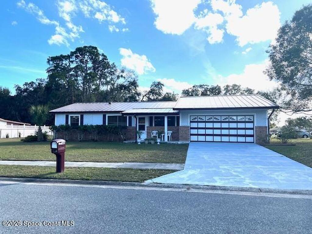 **Professional Photos to come!Welcome to this very clean, well maintained Traditional Brick Front home in North Titusville, in an established neighborhood, with NO HOA! This 3 Bed, 2 Bath home has a 2 Car oversized Garage with Laundry area folding counter and sink! Inside you will find an open layout with Living Area flowing into Dining and Kitchen. The Bedrooms are split plan for privacy. New Metal Roof Dec 2024. New Heat Pump 2025, Super Large fenced back yard, new Appliances 2024, New Paint inside and Fans, Newer Electric Panel, Screened and tiled back Porch! Move right in and make it your own, all this on .35 acre Corner Lot!! Close to area Schools, Space Center, Orlando Theme Parks, Beaches, the Indian River Lagoon for boating and fishing. Come take a look TODAY!