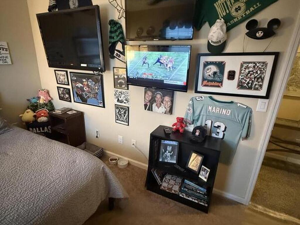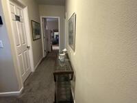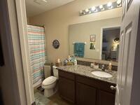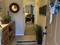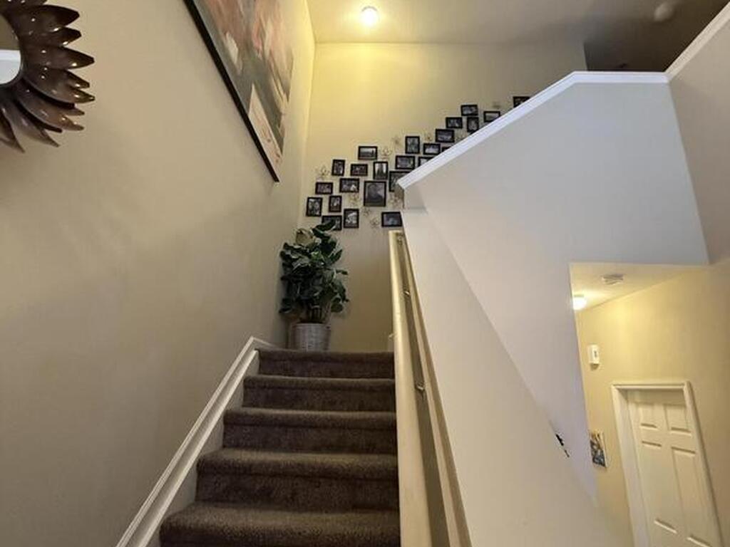 This three-bedroom, two-and-a-half-bath corner-unit townhome offers a comfortable layout with lake views and added privacy. Natural light fills the living spaces perfectly.The home features granite countertops throughout, creating a cohesive and updated look. The kitchen and bathrooms all have beautiful walnut cabinets to enhance the beauty of this home.Original owners of this home added some helpful upgrades including a top window blind that is remote control for either open, sheer or black out completely. 7 tall cabinets in the laundry room for extra storage space. There is also a ring camera doorbell for added security. The home is also wired with surround sound speakers and the upstairs bedroom has 3 tvs that will convey making it an ideal choice for everyday living or a low-maintenance lifestyle.