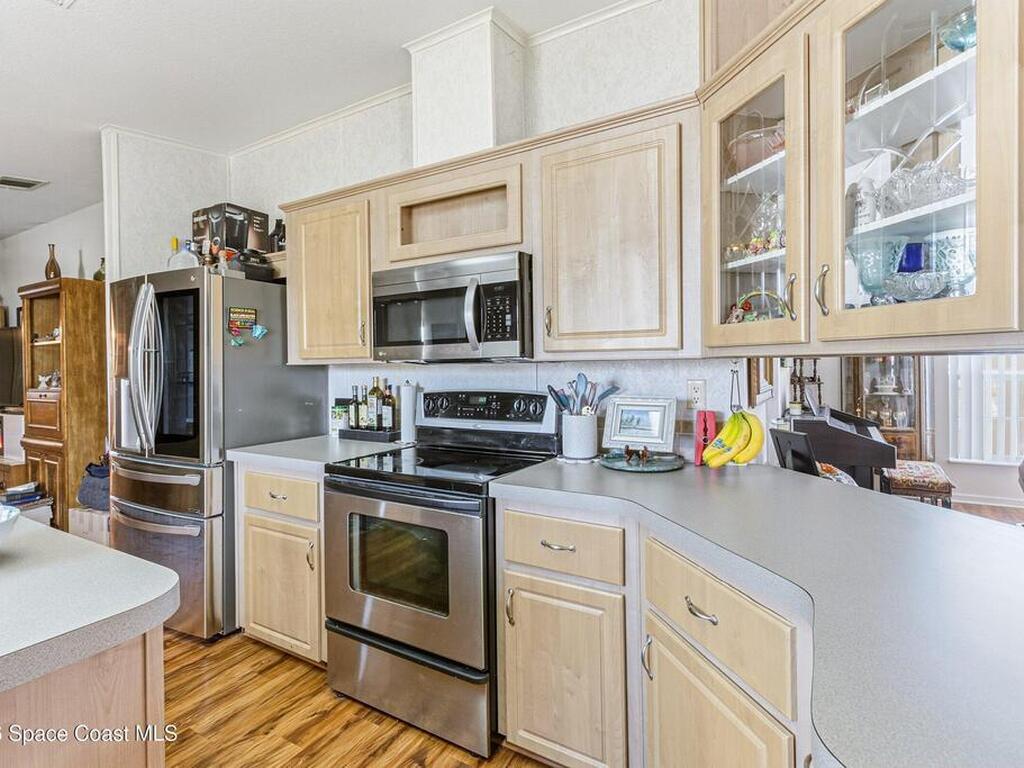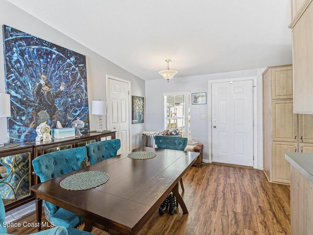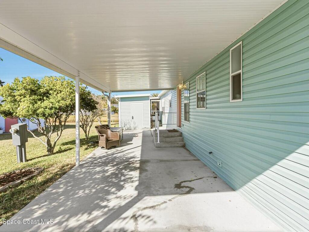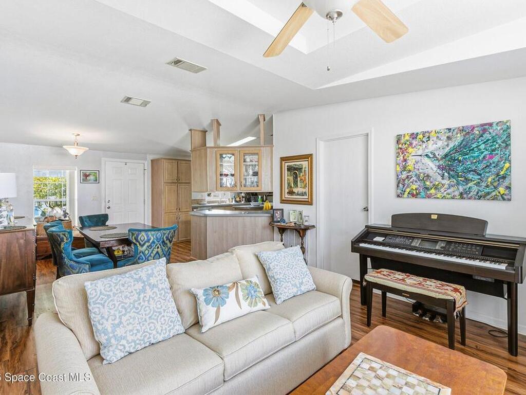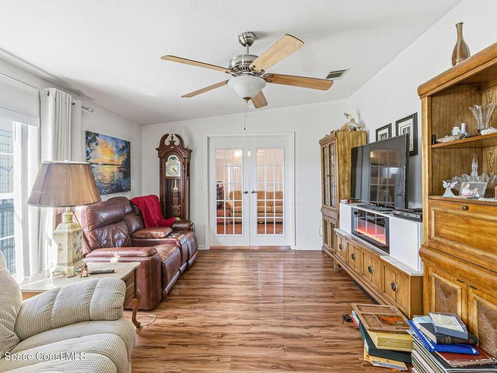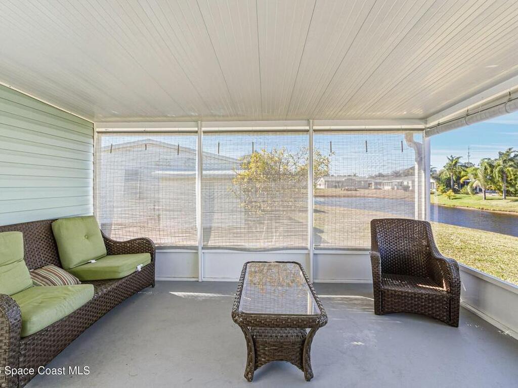 Coctails on the lanai in your waterview home where you can view the rocket lauches where you sit.Indoors you will find an open floor plan with 3bedroom, two baths.Master bath has a shower separate from the sunken tub , two sinks in the vanity as well.This community is gated and you Own your land.Free parking for your boat or RV.Plenty of activities in this senior development where your HOA dues are low and include Cable.Internet, lawncare and security.
