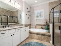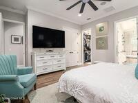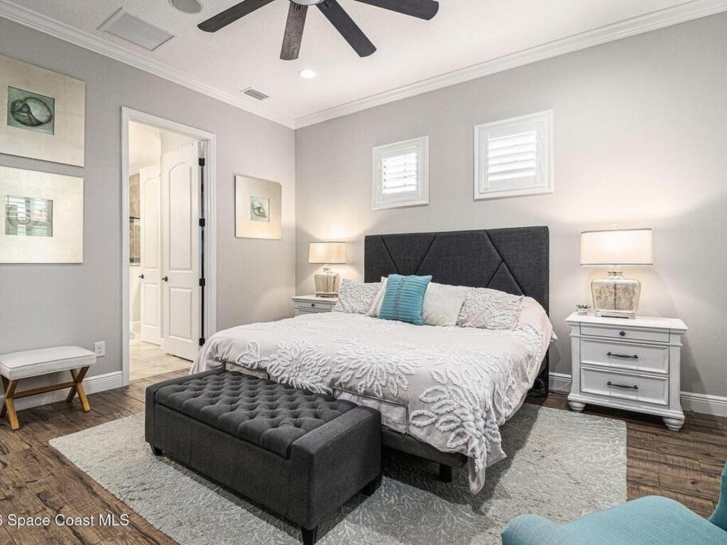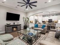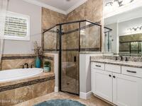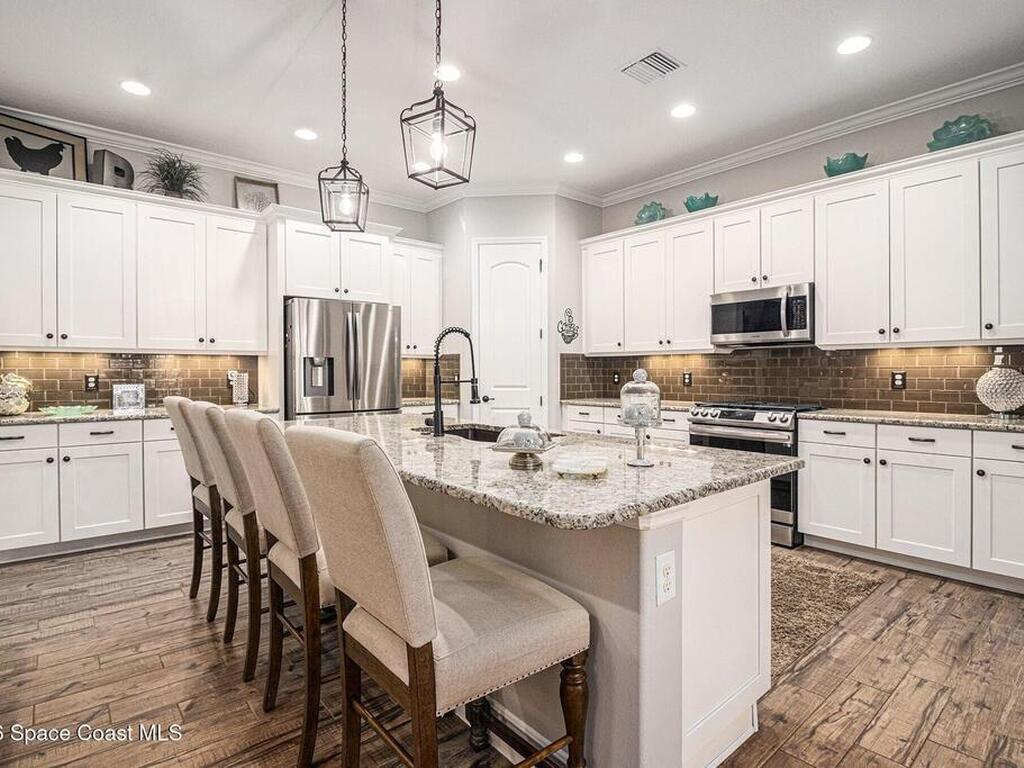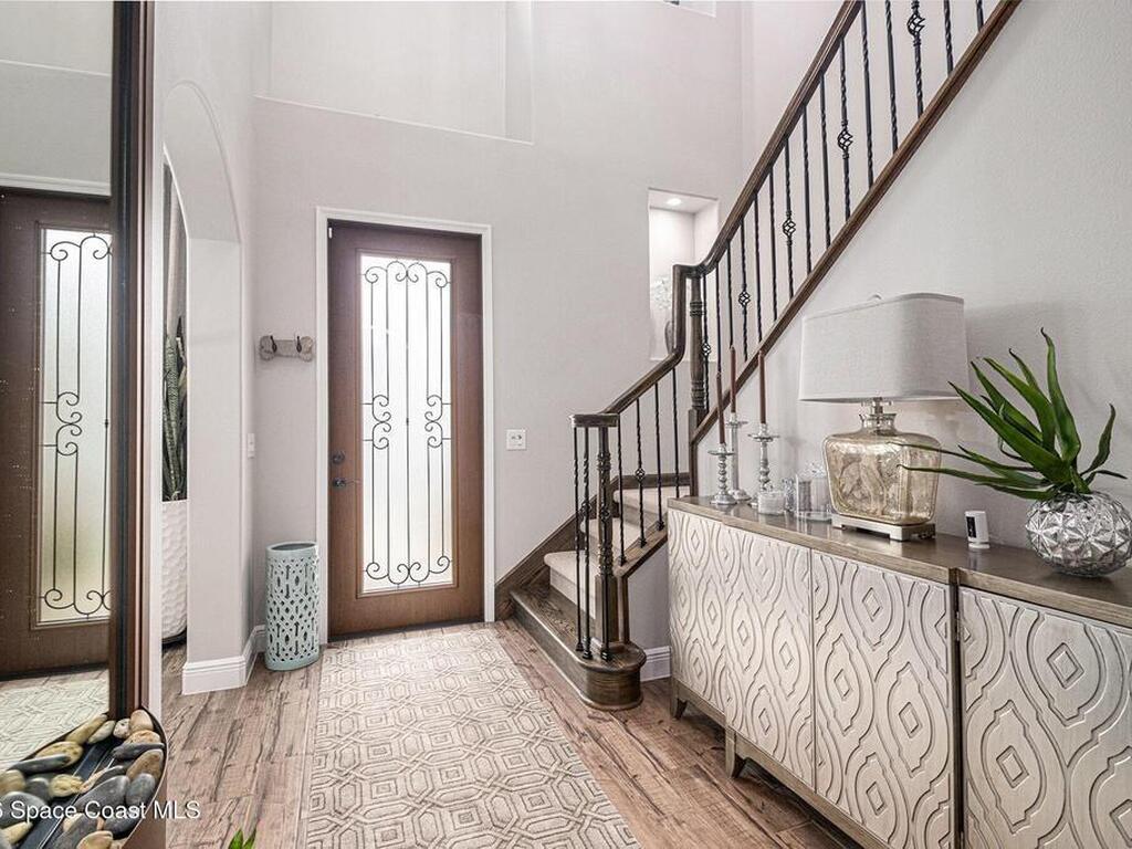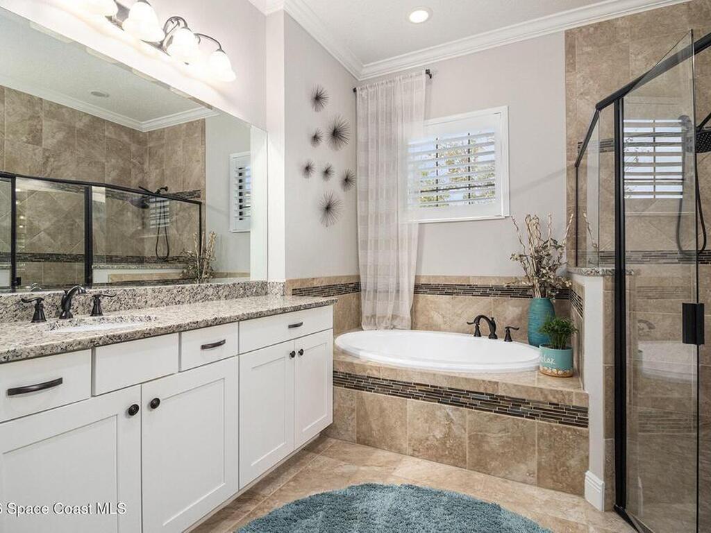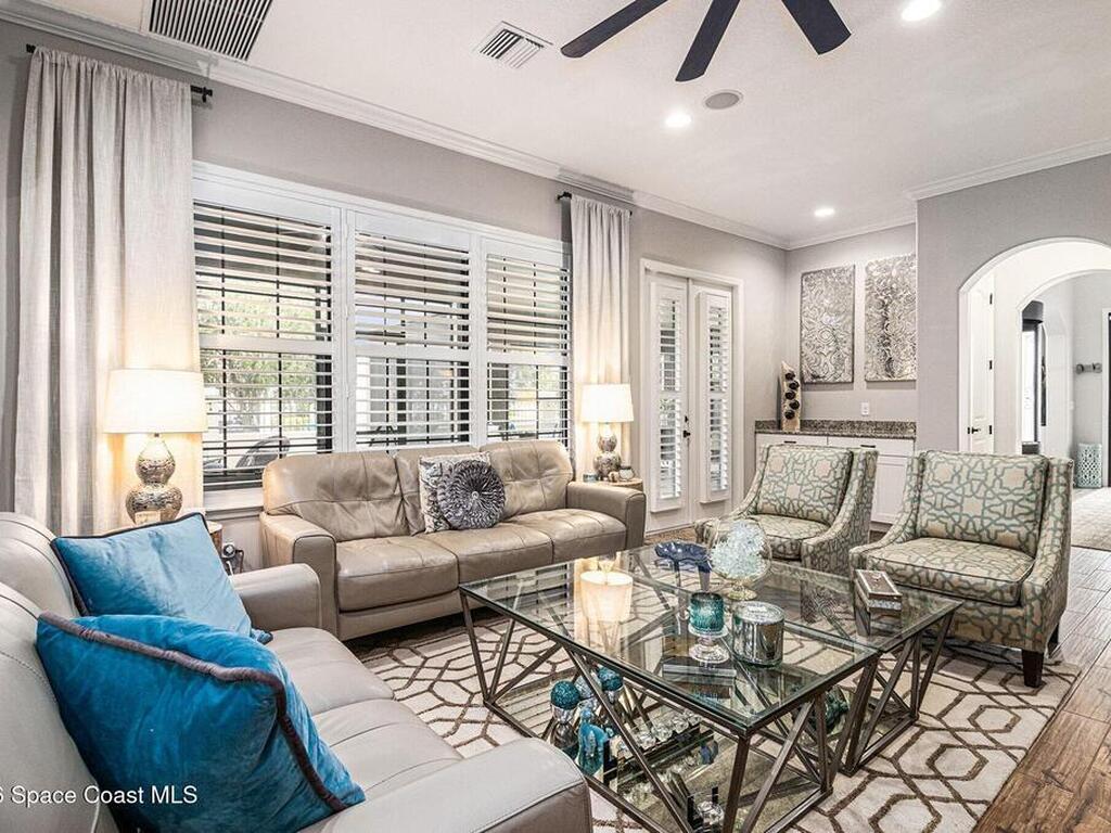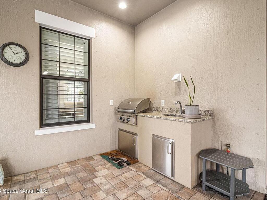 Welcome to Arrivas Village in the heart of Viera--this home is the original community model that set the standard for luxury living. This Mecina model, inspired by classic Spanish Colonial architecture, sits on a desirable corner lot and features the largest floor plan currently available in Arrivas Village. An oversized private courtyard and a screened, extended patio with a summer kitchen and gas grill create an ideal setting for outdoor entertaining. Inside, exceptional luxury meets effortless Florida living in this beautifully appointed 4-bedroom, 4.5-bath residence with a bonus room. The primary suite is conveniently located on the main level, while three additional upstairs bedrooms provide privacy for family or guests. The flexible bonus room offers an ideal option for multigenerational living, complete with a kitchenette, full bath, and large storage closet. The gourmet kitchen showcases ceiling-height cabinetry and premium finishes, flowing seamlessly into expansive living