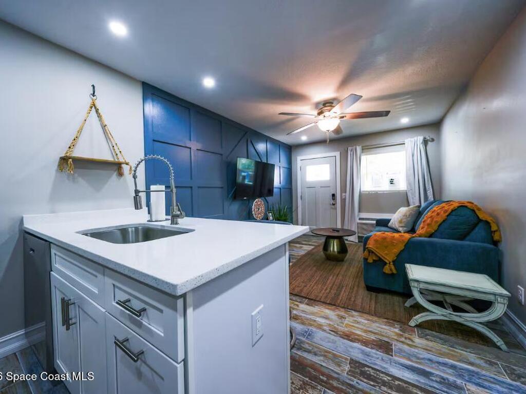 Experience elevated coastal living in this custom-remodeled one-bedroom short-term rental inspired by the timeless charm of Palm Beach. Designed for both comfort and flexibility, this unit offers two sleeping spaces--a luxurious king-size bed and a sofa that converts to an additional bed--making it ideal for extended stays or hosting guests.Fully equipped for convenience, the apartment includes a complete kitchen, high-speed Wi-Fi, free on-site parking, and complimentary washer and dryer access. Unwind in the expansive spa-like shower or enjoy the bright, sun-soaked ambiance reflected in every thoughtful detail. Guests have full access to shared outdoor amenities, including a BBQ grill, ping pong, foosball, and outdoor seating--perfect for relaxing or entertaining.