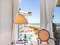 Experience refined oceanfront living in this luxury 2-bedroom, 2-bath southeast condo, ideally located on the third floor of a premier oceanfront building in the heart of Satellite Beach. Floor-to-ceiling windows showcase breathtaking ocean views from both the living room and primary suite, filling the open, light-filled layout with natural beauty. Seamless tile flooring flows through generous living and dining areas, opening to a private balcony perfect for Sunrise Coffee and Rocket Launches. High-end finishes include custom cabinetry, granite countertops throughout, in-unit laundry, abundant closet storage, and a spacious walk-in primary closet with balcony access. Recent upgrades include hurricane-rated sliding doors. No scheduled assessments. Amenities include; heated pool, sauna, clubhouse, BBQ area, tennis and pickleball courts, private beach access, secured lobby, elevator, cable and internet. Underground garage parking. Investor-friendly 30-day rentals allowed.