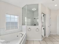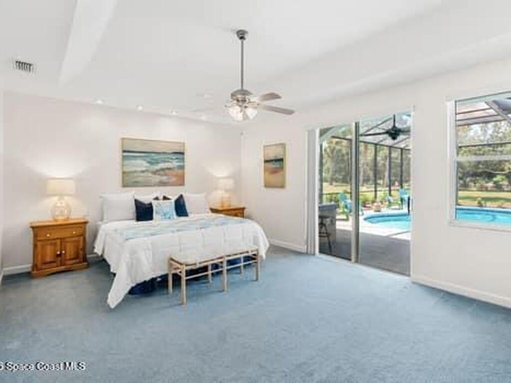 Enjoy spectacular rocket launches and serene Banana River views from this beautifully landscaped house situated on one acre in Central Merritt Island. This 4 bedroom, three bath house features a split, open concept floorplan with a screened saltwater pool and patio perfect for Florida living. The main suite offers a double vanity, steam shower, jetted garden tub and a large ''safe room'' walk in closet. Plenty of storage throughout in addition to the oversized 3 car garage that includes a workshop and electric lift to attic storage. Stay prepared with a whole-house portable generator and manual transfer switch. The community marina completes this southern retreat with a boat launch, dock and private slip for your personal boat lift. Book a showing today and make this house your forever home.