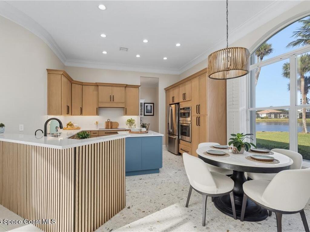 What you've been waiting for! Exceptional waterfront property completely remodeled & reimagined with special separate in-law cabana house. Alluring, expansive water views (167' along back). Artistically detailed 4BD/4BA including exceptional millwork/crown moldings throughout, custom built-ins, plantation shutters, electric window blinds, pop-up phone charger, screened porch, & VIEWS! Solar panels on roof, heated salt water pool with fountain, outdoor shower, oversized lot. Granted beach & lagoon dock access, tennis/pickleball courts, fitness ctr, 2 clubhouses with pools. A home for everyone!