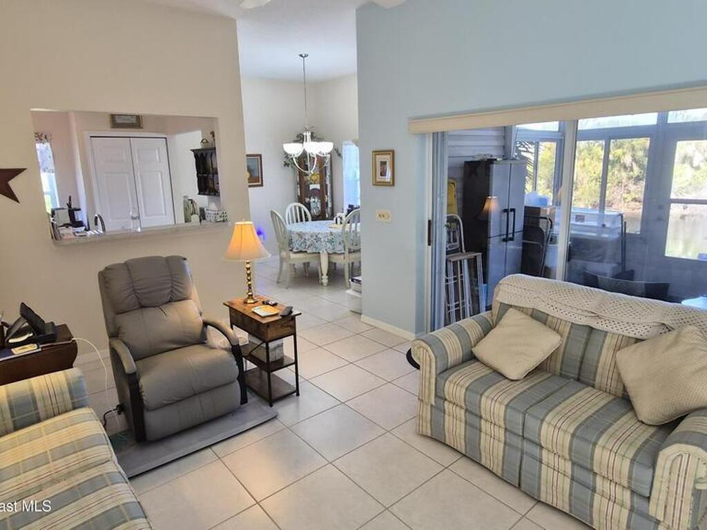 First floor condo. Fully Furnished. Newer unit then most in this phase, built in 1999 with Concrete Block Construction compared to Frame Construction in other phases. High 10' ceilings throughout. Panoramic views of the lake. New A/c in 2025. Both bathrooms have been updated. No carpet, vinyl and tile flooring. Even the screened porch is tiled with great views of the lake and North / South Exposure. Large custom closets. Spacious kitchen with pass-thru to the living area. All appliances convey. Murphy bed in the 2nd bedroom is included. Hurricane accordion shutters for kitchen, dining room and porch. The $400 H.o.a fee includes so much including: cable t.v. & high speed internet, pool, lawn/landscaping, and insurance, exterior maintenance, trash & roof replacements..