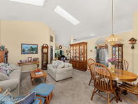 This one owner home sits on a rare pie-shaped lakefront lot on a cul-de-sac, one of the best water-view lots in the subdivision. A central kitchen & popular open floor plan are filled w/ natural light from skylights, creating a bright & welcoming living space. Enjoy serene lake views from almost every window of the home including kitchen table. The primary suite also offers peaceful water views, walk-in closet, dual sinks, updated shower and garden tub. The screened patio is ideal for relaxing or entertaining while overlooking the lake. Key updates include a 2014 roof, accordion hurricane shutters, 2015 HVAC, and storm-impact double front doors & a storm-impact sliding glass door to the patio. All appliances convey, including washer and dryer. The home is well lived in and offers a well-designed and popular layout. Located near restaurants & shopping, with easy access to major employers, beaches, PSFB & highways.