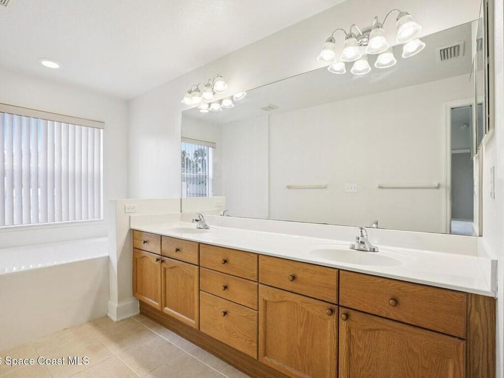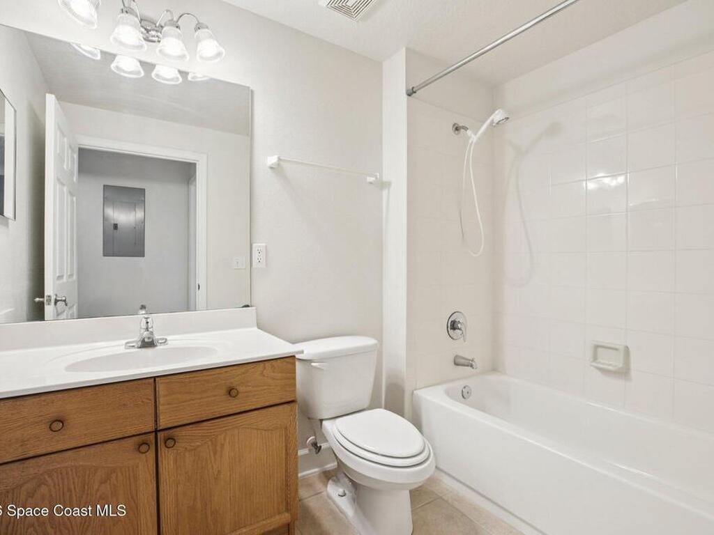 Great opportunity to own a condo in the desirable Portside Villas community in Cape Canaveral. Just a short walk or bike ride to the ocean, this unit is ideally located on the east side of A1A, so there's no need to cross a major highway to enjoy the beach. This well-maintained 2006-built condo features a rarely available 3-bedroom, 2-bath floor plan and is situated on the highly desirable first floor with no stairs. As a corner unit in a two-story building, it offers added privacy and natural light. NEW carpet throughout and an inside laundry area with washer and dryer add to the move-in-ready appeal. Enjoy the coastal breeze from the large screened lanai, which also includes an additional storage closet. The spacious bedrooms provide comfortable living, and the primary suite features two large walk-in closets along with a well-appointed bath offering dual sinks, a soaking tub, and a walk-in shower. The building is well maintained, the A/C was replaced in 2018, and exterior