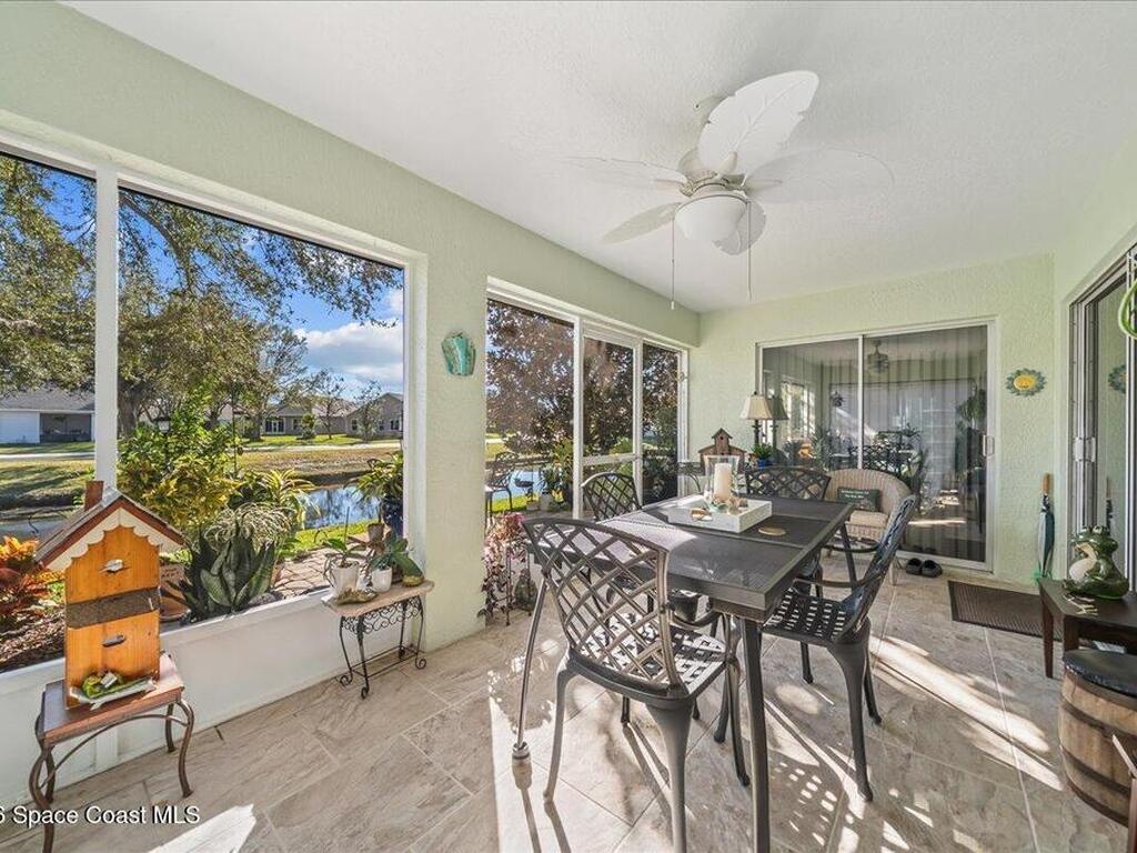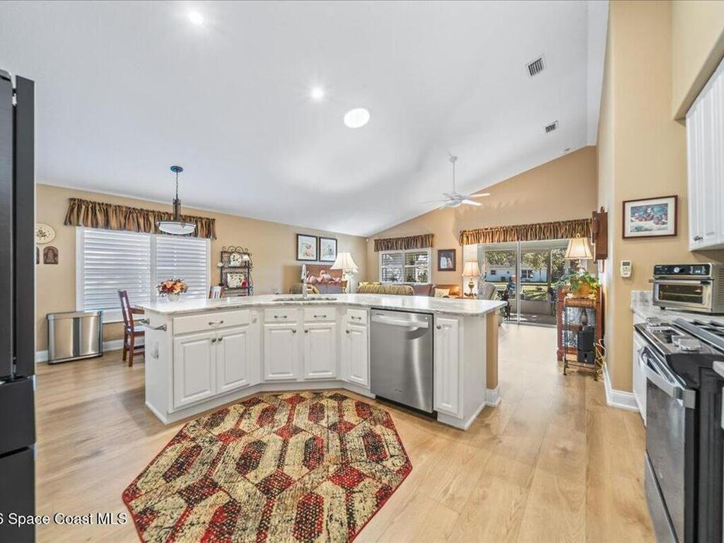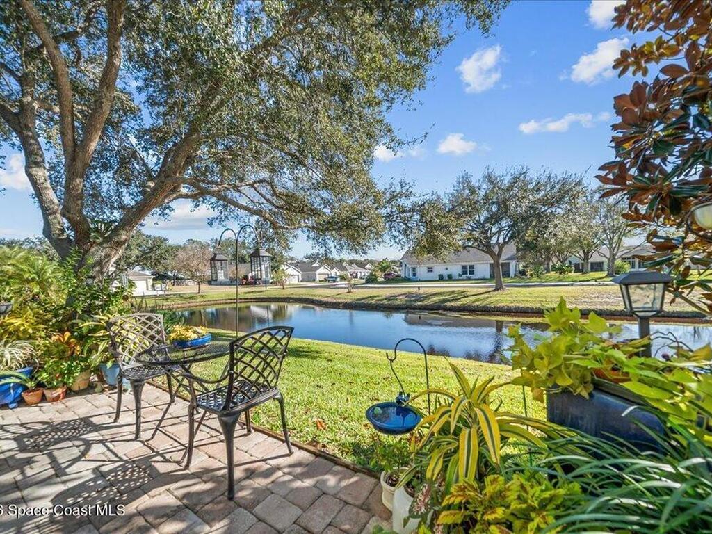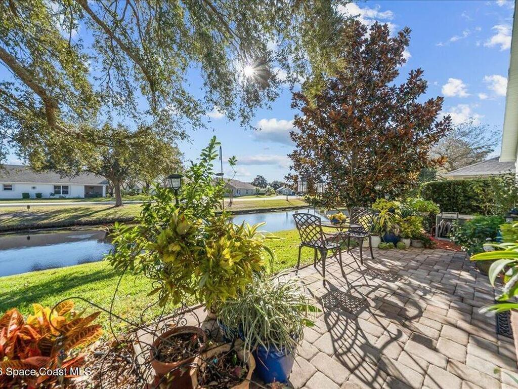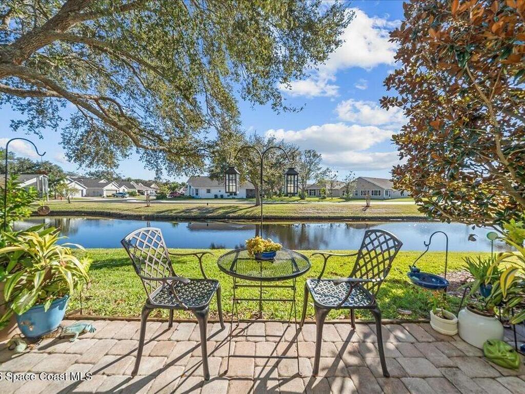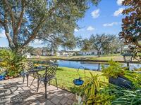 Welcome to your Waterfront Home in the gated community of Compass Pointe. This 3BD/2BA move-in ready home has been updated throughout. Enjoy the updated kitchen with 42'' white cabinets, appliances and an enlarged pantry. The flooring has been updated throughout with Luxury Vinyl Plank for easy maintenance and beauty. This home was upgraded with all new accordion shutters throughout. Both bathrooms have beautifully upgraded seamless glass showers and updated fixtures. The open floorplan of this home offers water views from the kitchen, family room, primary bedroom and welcoming screened lanai. The 2023 roof and gutters add an additional layer of comfort. Enjoy the community amenities, including a screen heated pool and spa, bocce ball, putting green, shuffleboard and organized activities. Conveniently located to shopping, dining and the beaches.