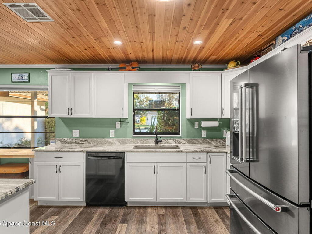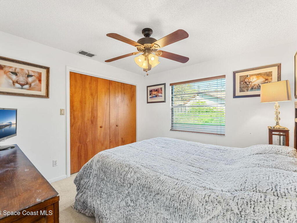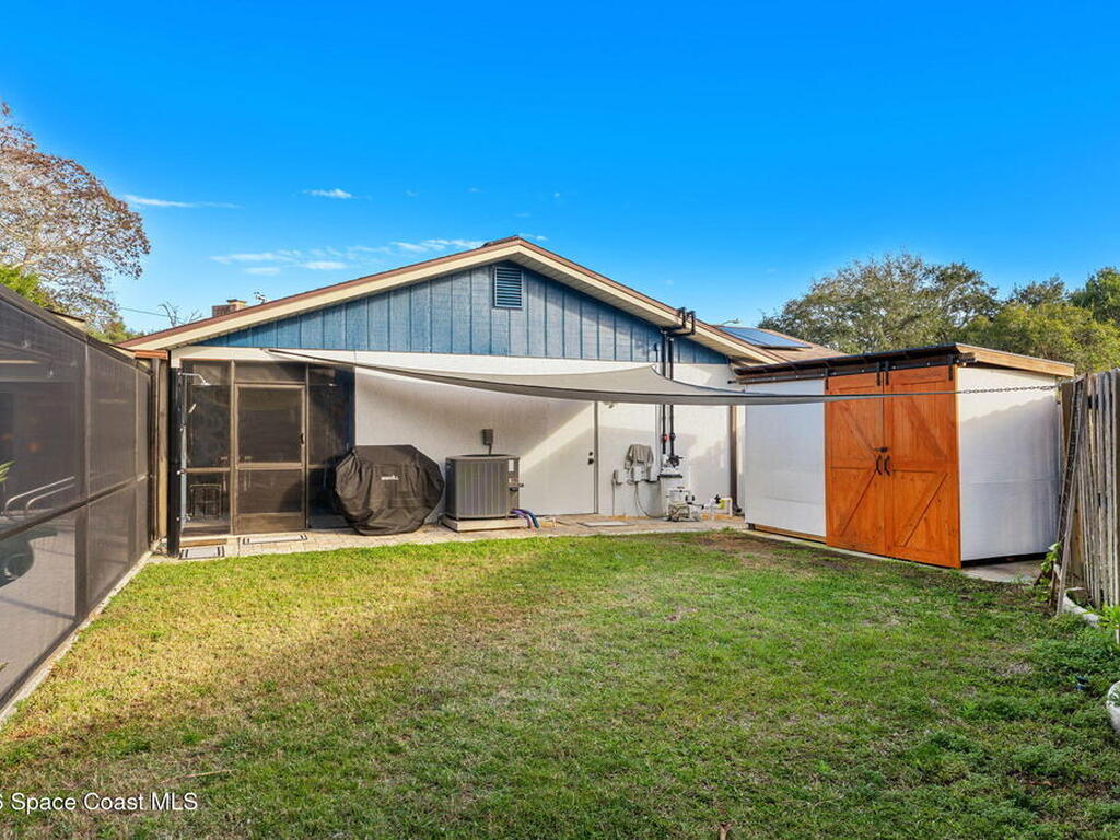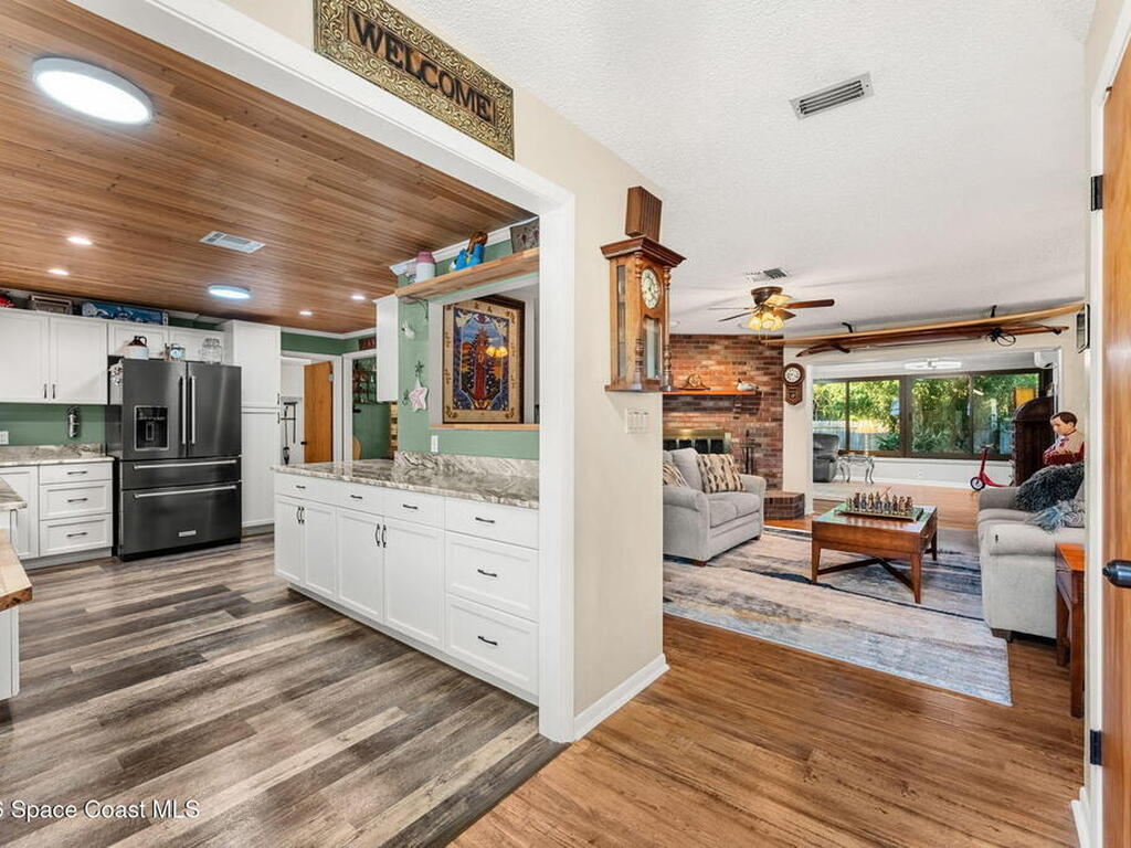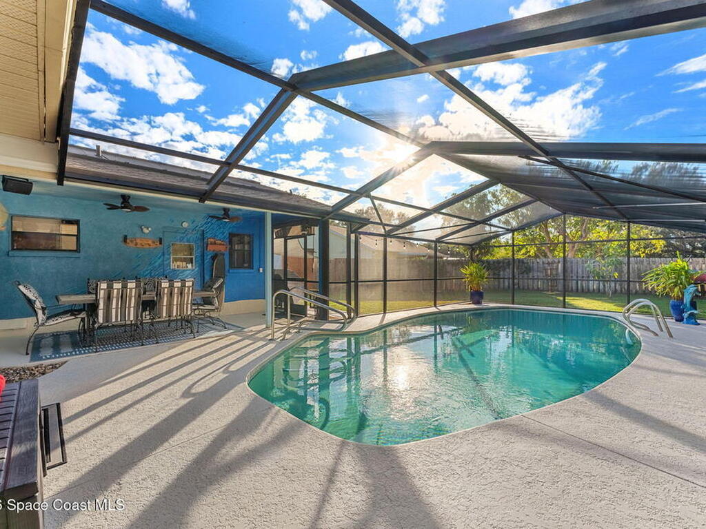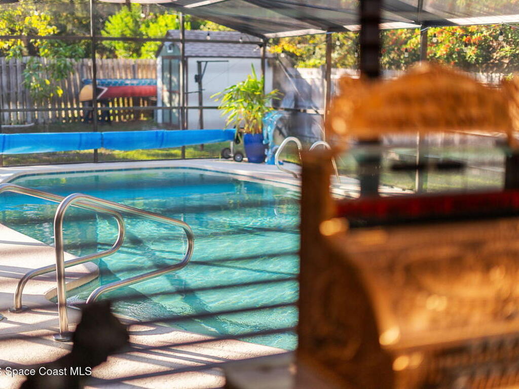 Welcome to 44 Berkley Square, a lovingly maintained 3-bedroom, 2-bath home tucked away on a quiet cul-de-sac just blocks from the Indian River. This inviting property offers the perfect blend of comfort, privacy, and Florida outdoor living.Step inside to find a formal living room with a cozy wood-burning fireplace, ideal for relaxing evenings, while the expansive family room provides plenty of space for entertaining friends and family. The home has been freshly painted, creating a clean, move-in-ready feel throughout.Out back, enjoy your own private oasis -- a screened-in pool overlooking a peaceful nature preserve, offering serene views and exceptional privacy. With no HOA, you'll also appreciate the flexibility of a 2-car garage plus side parking for a boat or RV, perfect for those who love the Florida lifestyle.Additional highlights include a roof replaced in 2020, fully paid solar panels, and a large interior laundry room with extra refrigerator for added convenience.
