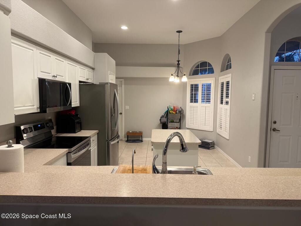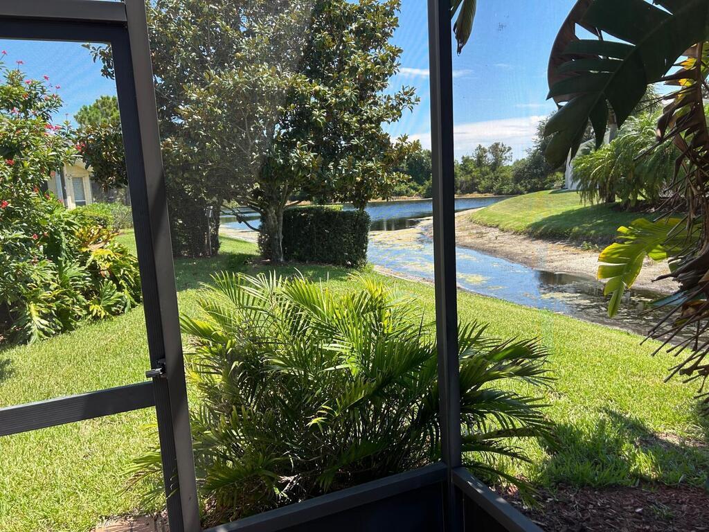 Prestigious gated community in Sawgrass at Suntree. This 3-bedroom, 2-bath home features a living/dining combo with high ceilings, a kitchen with stain steel appliances, a spare refrigerator in the garage, and a central island. The master suite has a walk-in closet, a bathroom with a separate glass shower, and a large bathtub. Enjoy a screened-in back porch and Hurricane shutters for protection. The clubhouse and swimming pool offer accessibility and privacy. Conveniently located near Cosco, restaurants, shopping, golf courses, and A+ ranked schools. Lawn care is provided