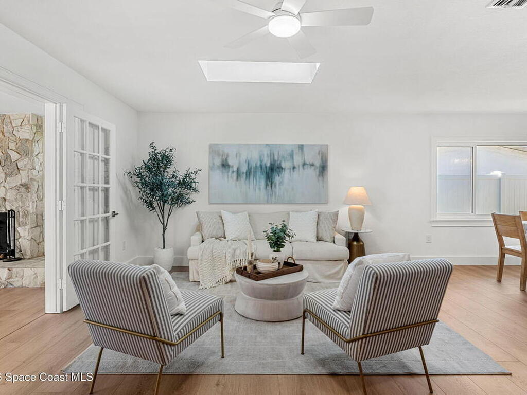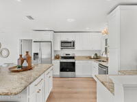 Coastal oasis just three blocks from the beach and minutes from a public park! This beautifully updated home with new paint inside and new paint outside features 4 bedrooms, 2 bathrooms, and two spacious living areas designed around an inviting open-concept layout. Interior highlights include brand-new flooring throughout, a cozy wood-burning fireplace, all-new modern light fixtures, and all-new appliances.Both bathrooms have been fully remodeled with elegant mother-of-pearl tile, creating a refined coastal ambiance. Major upgrades include all-new plumbing connected to city streets, a 2017 roof, 2022 HVAC system, and a 2023 water heater, offering peace of mind for years to come. Step outside to enjoy a fully fenced-in yard, perfect for pets, play, or private outdoor entertaining.The finished two-car garage boasts epoxy flooring and custom built-in cabinetry, offering exceptional storage and functionality. Move-in ready and perfectly positioned for relaxed beachside living.
