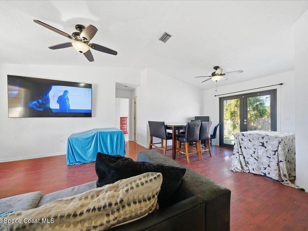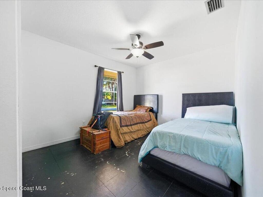 Situated on a corner lot in Palm Bay, this home offers flexible living space designed to meet today's needs. The garage has been converted to provide additional living area currently used as 2 bedrooms, ideal for a home office or guest rooms all while still allowing front access for storage and the homes water filtration system. The home features 3 bedrooms and 2 baths, a functional layout and fenced yard with a shed and fire pit. The metal roof was installed 2017 with a transferrable warranty. Water heater in 2021, A/C in 2021, Water filter system was upgraded in 2022, and the septic was pumped and inspected in 2026 With its spacious interior, valuable upgrades, and corner-lot location, this home is a great opportunity for buyers seeking space, peace of mind, and versatility.