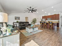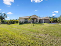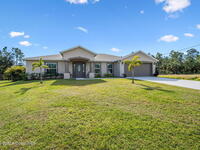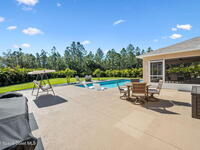Welcome to the one you've been waiting for. This stunning 3-year-new custom home sits on an oversized .4-acre lot with no HOA--bring your RV, boat, and all the toys with ease thanks to a convenient double-wide gate. Step into your own private, resort-style oasis featuring a heated saltwater pool, extended pool deck, lush Areca palms for total privacy, a covered screened porch, cabana bath, and a concrete fire pit area perfect for entertaining or unwinding under the stars. Inside, the open-concept design impresses with vaulted ceilings, tile flooring throughout, recessed lighting, and stylish fixtures. The chef's kitchen boasts a large storage-rich island, 42'' cabinetry, granite countertops, stainless steel appliances, and a massive walk-in pantry. The luxurious primary suite offers a spa-like bath with dual vanities, tiled walk-in shower, soaking tub, and an oversized walk-in closet. Thoughtful upgrades include a hybrid water heater, attic fan, rain gutters, and A/C in the garage.