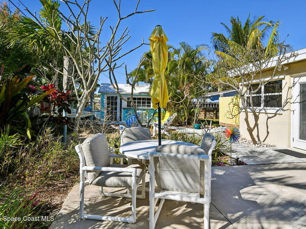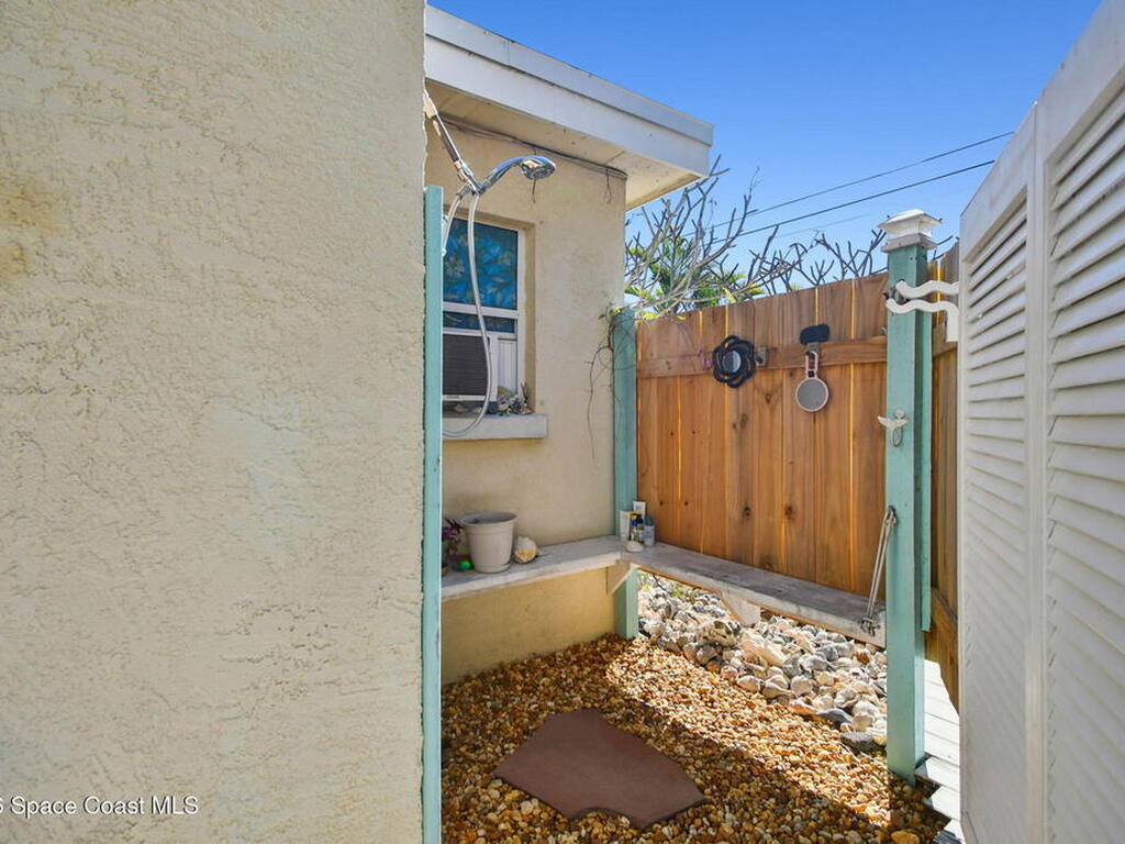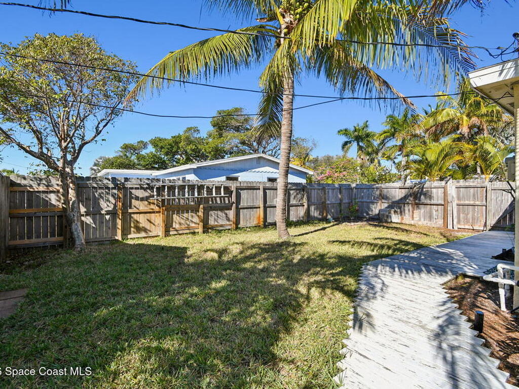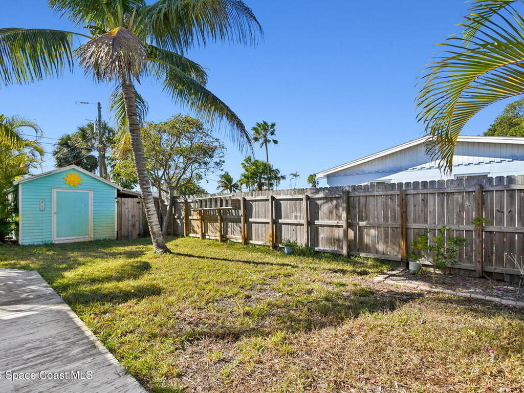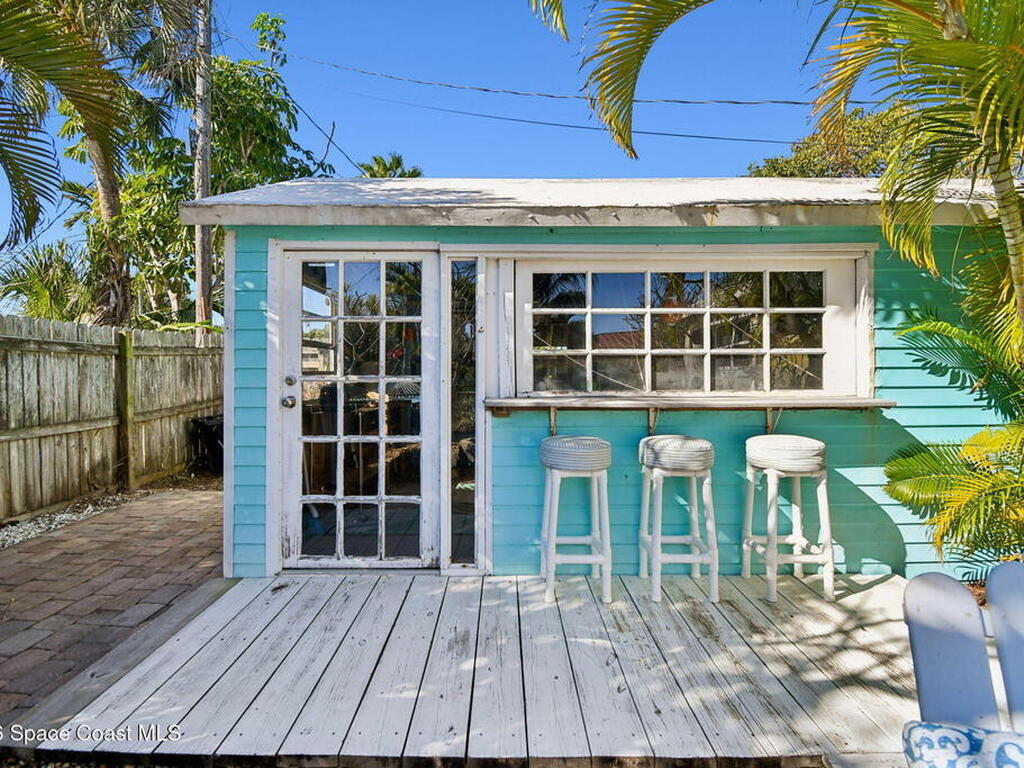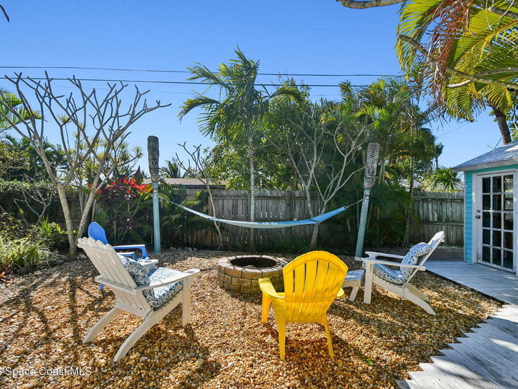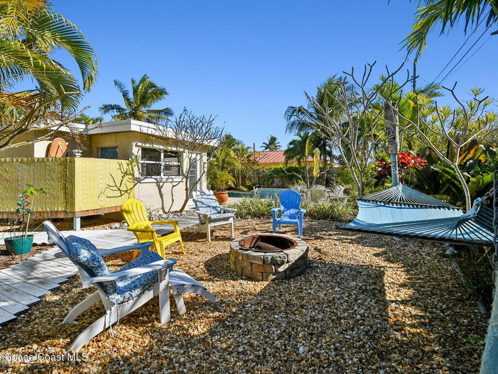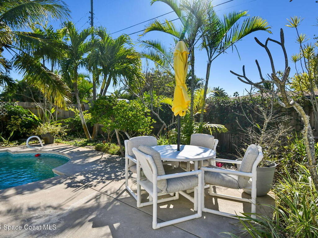 Located just minutes from the ocean, this beautifully updated 3-bedroom, 2-bath Satellite Beach pool home captures the best of relaxed coastal living with exceptional versatility. The spacious primary suite is ideal as a private in-law retreat, featuring a walk-in shower, kitchenette with refrigerator and microwave, king-size sleeping area, closet, and private rear entrance.The backyard is a true island oasis with an inground pool, fire pit, outdoor shower, and lush tropical landscaping accented by fruit trees, gardenias, and night-blooming jasmine--perfect after a beach day. Inside, enjoy an updated kitchen with white quartz countertops, stainless steel appliances, and modern finishes. Major upgrades include a new roof, newer HVAC, and updated washer and dryer.A charming she-shed for hobbies, plus additional storage for gardening and equipment, add flexibility and function. The tropical front yard offers standout curb appeal. Ideal as a full-time residence, multi-generational