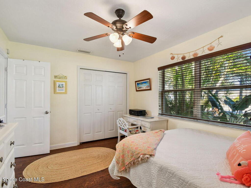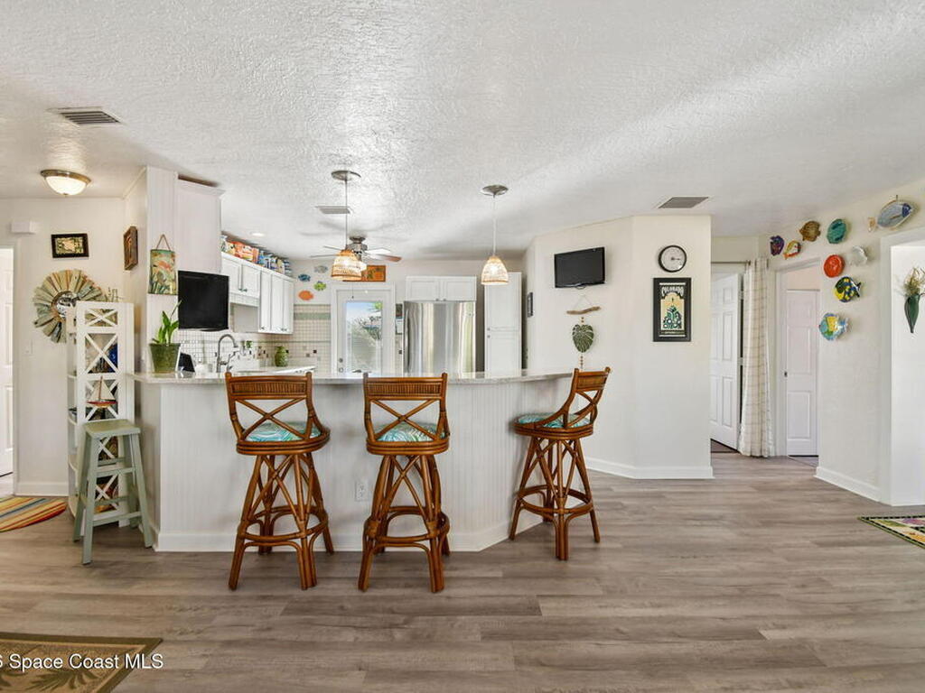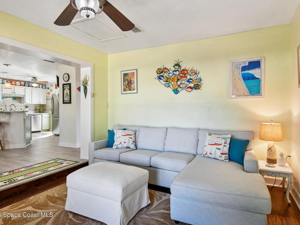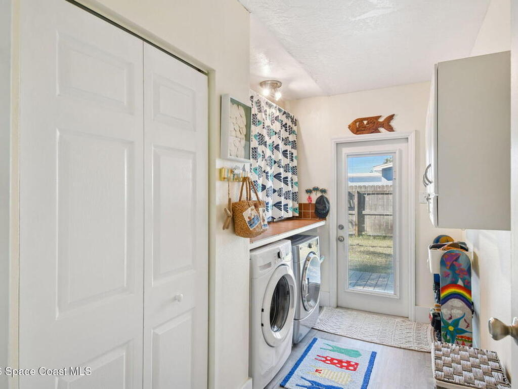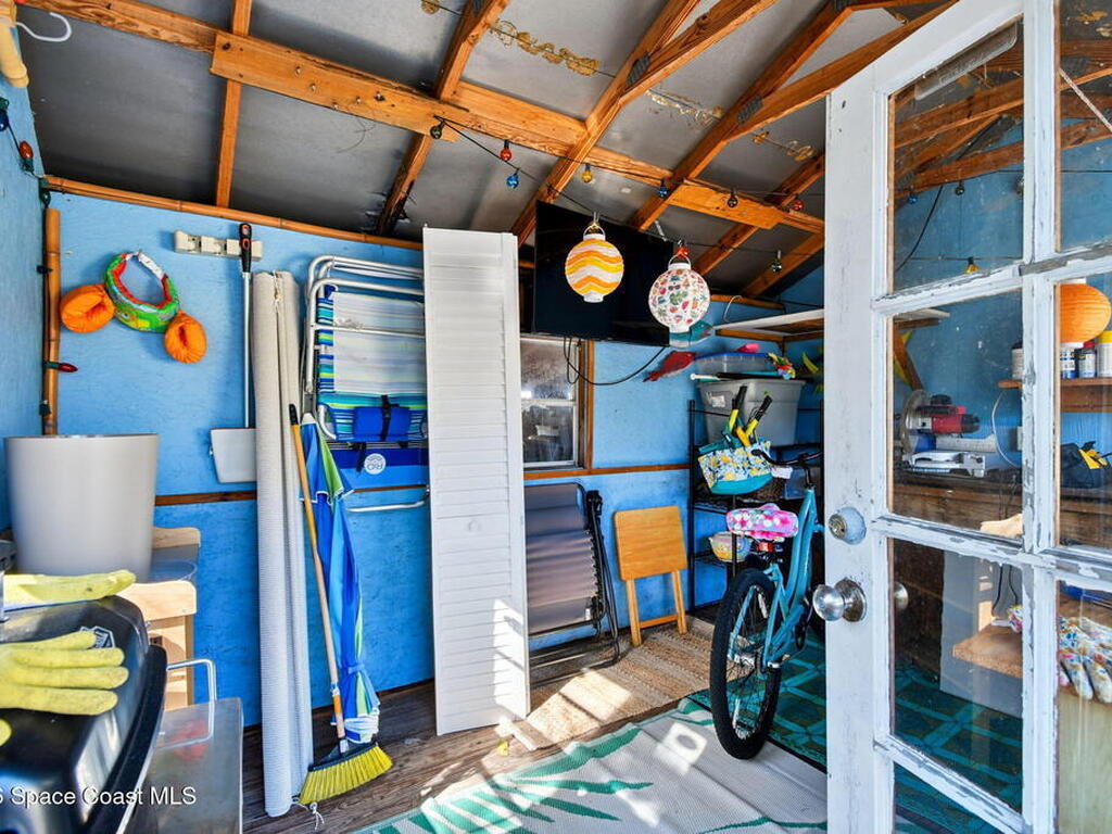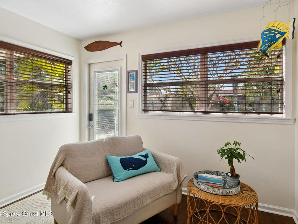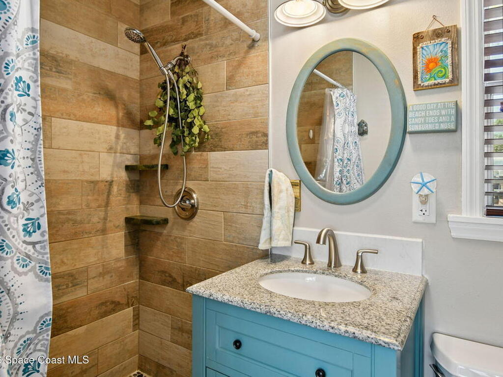 Located just minutes from the ocean, this beautifully updated 3-bedroom, 2-bath Satellite Beach pool home captures the best of relaxed coastal living with exceptional versatility. The spacious primary suite is ideal as a private in-law retreat, featuring a walk-in shower, kitchenette with refrigerator and microwave, king-size sleeping area, closet, and private rear entrance.The backyard is a true island oasis with an inground pool, fire pit, outdoor shower, and lush tropical landscaping accented by fruit trees, gardenias, and night-blooming jasmine--perfect after a beach day. Inside, enjoy an updated kitchen with white quartz countertops, stainless steel appliances, and modern finishes. Major upgrades include a new roof, newer HVAC, and updated washer and dryer.A charming she-shed for hobbies, plus additional storage for gardening and equipment, add flexibility and function. The tropical front yard offers standout curb appeal. Ideal as a full-time residence, multi-generational