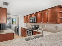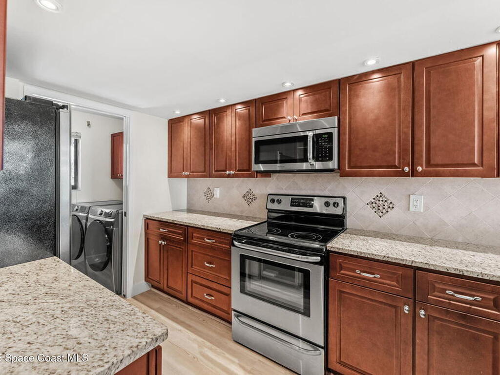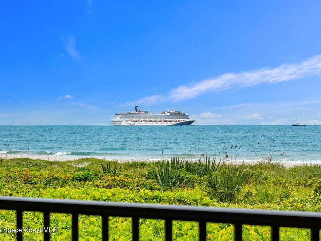 BEAUTIFULLY UPDATED 2/2 DIRECT OCEAN IN CAPE CANAVERAL!!! Enjoy direct ocean views from the 2nd floor at Canaveral Sands, a superbly managed and maintained community, and one of the closest oceanfront complexes to Kennedy Space Center AND Port Canaveral. Enjoy unobstructed rocket launches over the ocean, and watch the cruise ships go in and out of port several days per week. Ask any local...these things never get old! Brand new impact sliders and newer AC keep energy bills low, while newer luxury vinyl plank and neutral paint set the canvas for your choice of decor. Sliders off both the living room and master bedroom lead to a deep open balcony offering fresh air and private outdoor living space. The stunning remodeled kitchen features cherry wood cabinetry, granite countertops, wine fridge and stainless appliances. The unit also features interior laundry and a detached private single car garage, LARGE DOG PERMITTED -- NO WEIGHT LIMIT!! One month minimum rental term.