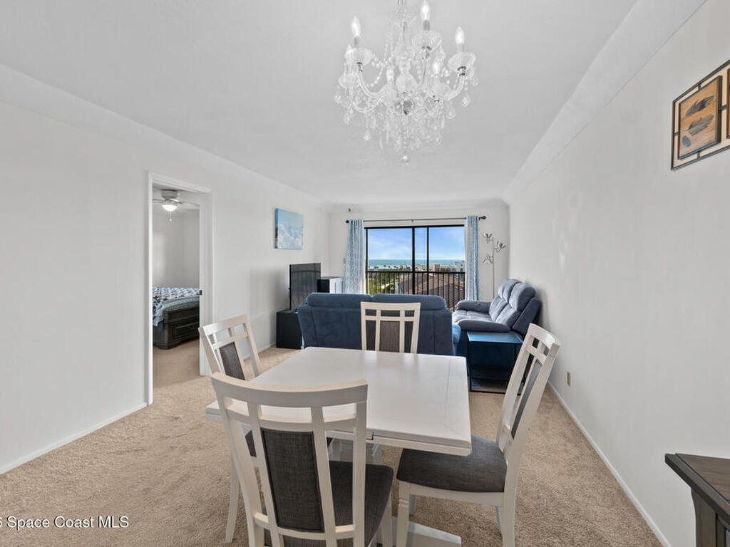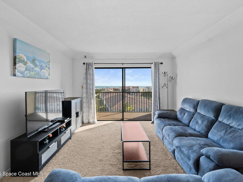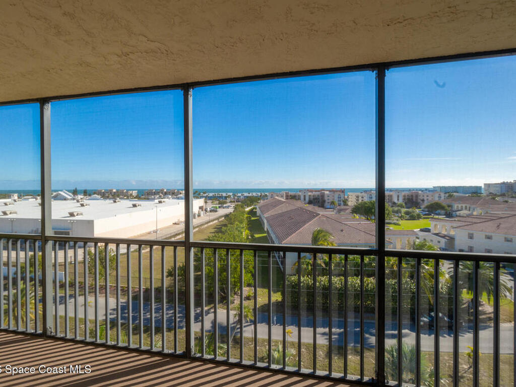 Enjoy Panoramic ocean views, ocean breezes, and sunrises from the private balcony of this beautifully updated 7th-floor 2-bed, 2-bath condo. Featuring a remodeled kitchen with stylish vinyl plank flooring, sleek cabinetry, granite countertops, tile backsplash, and modern finishes. The primary bathroom has been tastefully updated with elegant tile work, and plush carpeting in the bedrooms provides comfort. Upgrades include a new 2022 roof, brand-new water heater, and 2019 HVAC. Roll-down hurricane shutters protect the ocean-side window and balcony door, and a spacious storage closet offers space for all your beach gear. Move-in ready with optional furnishings, this turnkey residence offers the perfect blend of luxury and convenience. Centrally located in Indian Harbour Beach, residents enjoy resort-style amenities including a sparkling community pool, clubhouse, and tennis. Water, cable, and internet are included--inviting you to relax, unwind, and fully embrace the coastal lifestyle!