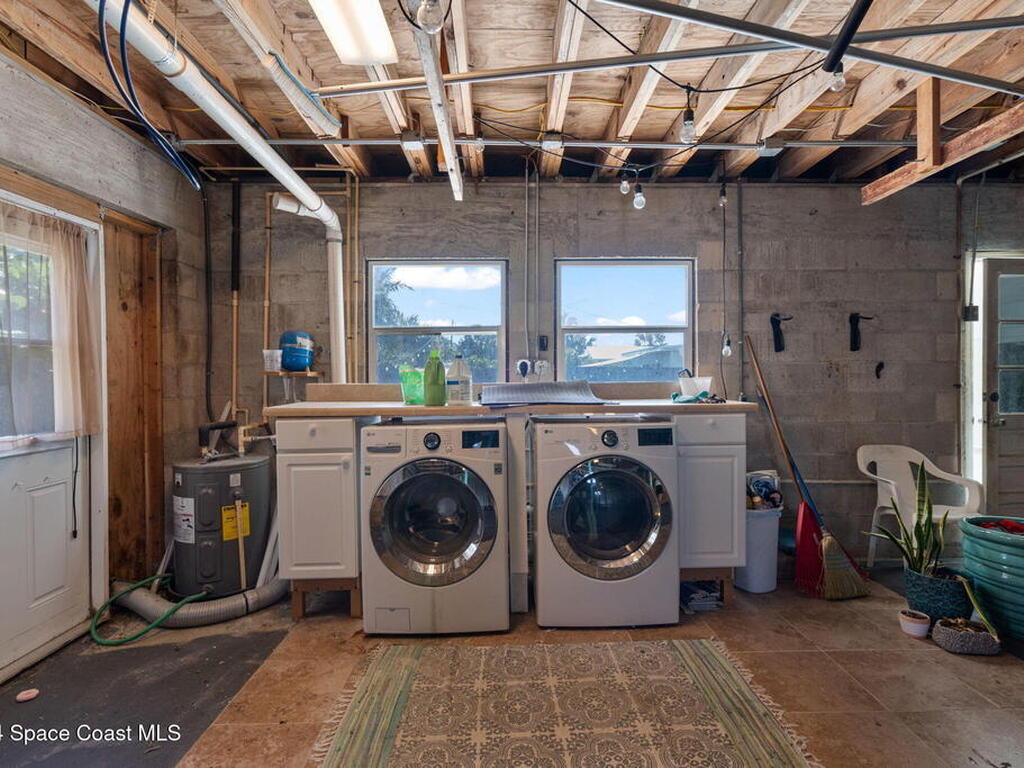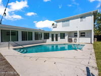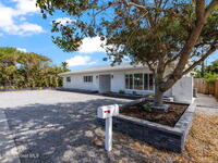The perfect opportunity for beachside living less than 1 mile to Downtown Cocoa Beach and a short stroll to the ocean. This pool home features a 5 bedroom 2 bathroom main house with a 1 bedroom 1 bathroom, 700 sq ft guest apartment with full kitchen over the garage. Live in the main house and rent the apartment or keep the current licensed short term rental going. Recent updates and standout finishes include a newer roof, HVAC, stone counters, new flooring throughout, stainless appliances, huge kitchen island, a shiplap accent wall, crown molding, a resurfaced pool, fencing, sod, the list goes on. In addition to the driveway up to the garage there is ample graveled parking in front of the home. Minutes to area shops and restaurants, Cocoa Beach is a dream destination and perfect town for investment. Currently a top 10 rated surf town in the world, you'll never want to leave.