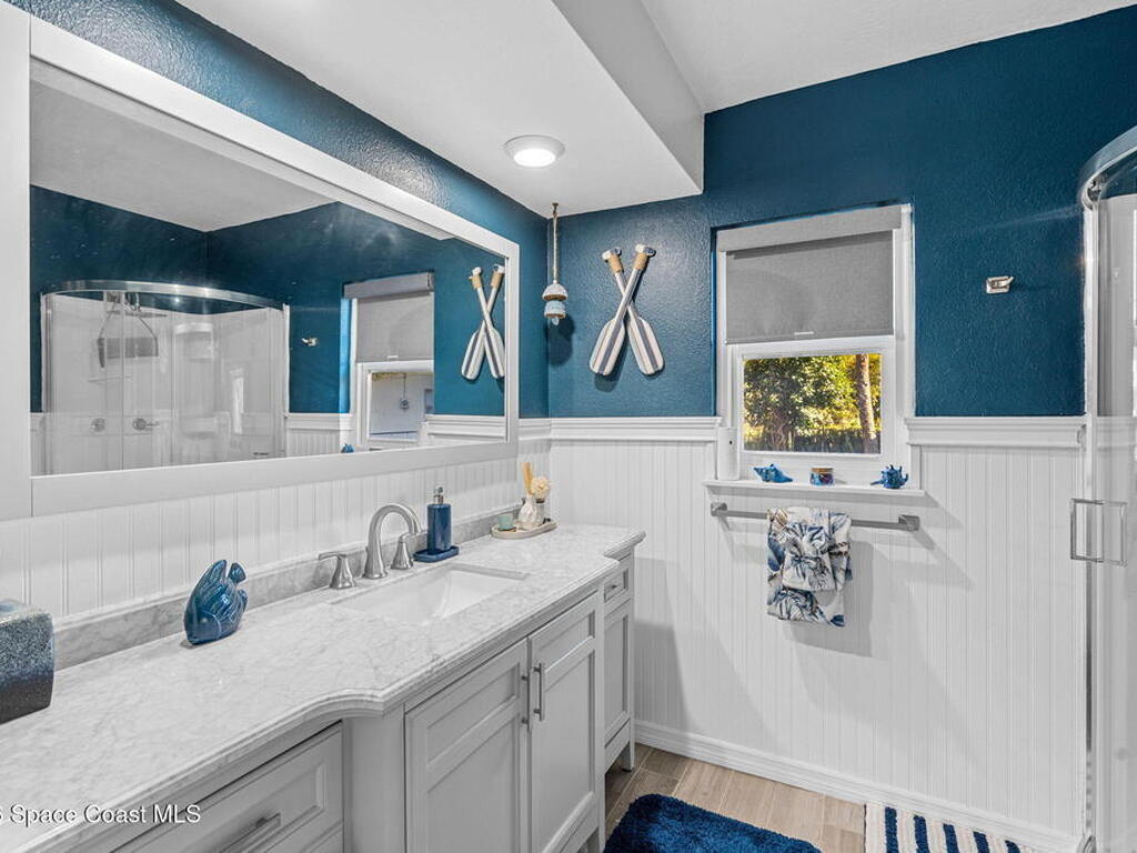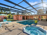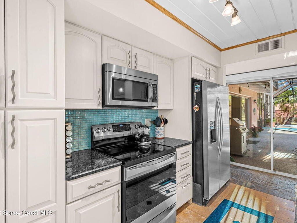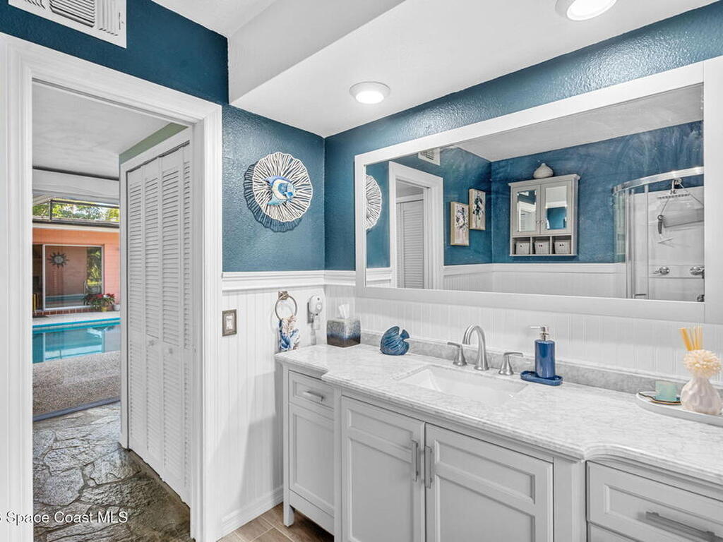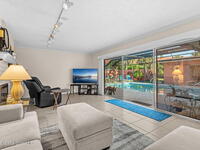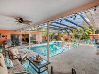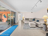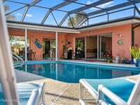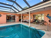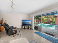 Welcome to your private coastal retreat in the heart of Cocoa Beach -- where luxury, privacy, and the ocean lifestyle come together on nearly half an acre of paradise. Step into a backyard designed for resort-style living. A large screened-in pool and spa create your own personal oasis, perfect for relaxing, entertaining, and enjoying Florida's endless sunshine. From here, a private gated fence opens to a walking path that leads to the beach -- less then a five-minute stroll from your backyard to the sand, offering the rare luxury of direct, convenient beach access. Inside, the home opens into a light-filled great room centered around an electric heated fireplace, creating a warm, inviting space that flows seamlessly into the kitchen and primary suite -- all with beautiful views of the pool.
