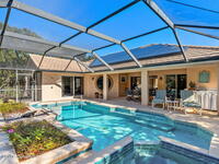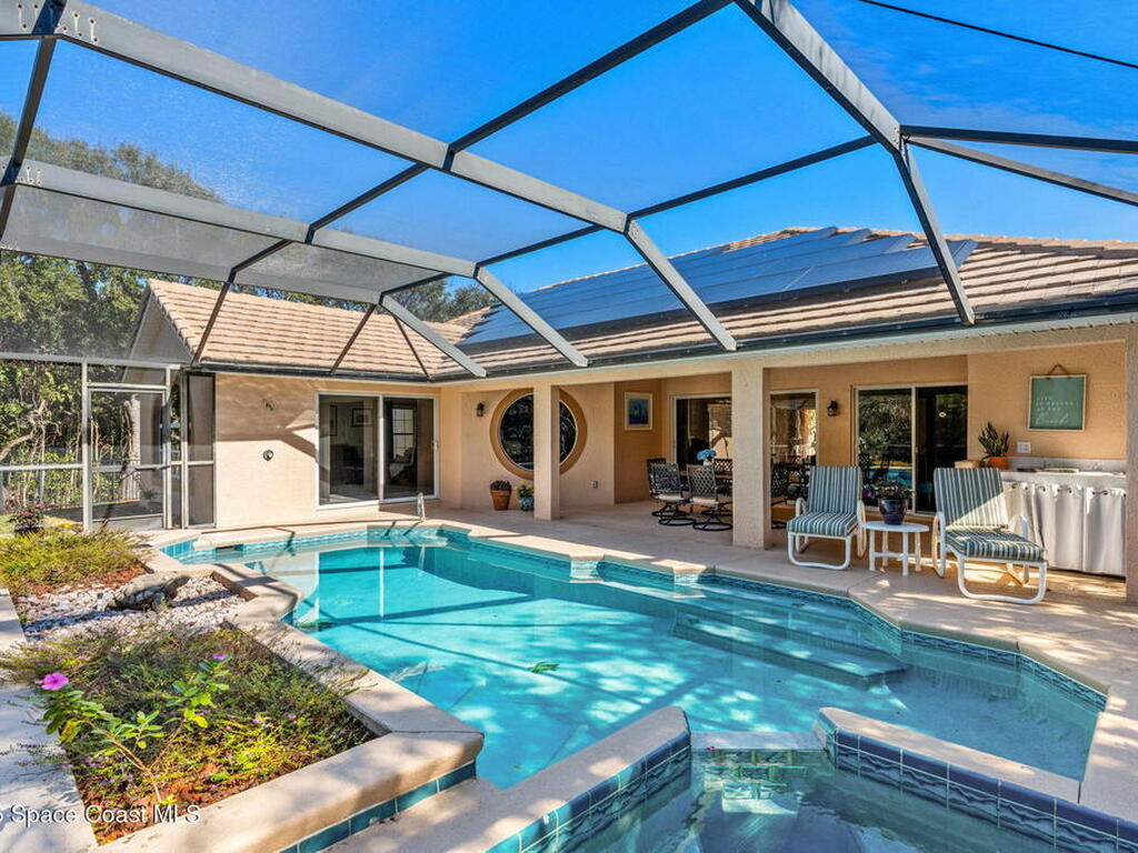 Exceptional opportunity for nature lovers located in the prestigious deed-restricted community of Mark's Landing. This immaculate home offers 2 Tesla Power Walls reducing energy costs significantly. The property is situated on an elevated .81-acre estate lot that backs up to a 400-acre Maritime Hammock Preserve. Directly across A1A, just a 5-min walk to our quiet beautiful beaches. It is surrounded by wildlife sanctuaries and conservancy tracts close to hiking trails and Indian River kayak access, making the home feel like a private nature preserve.Residence features: Modern open floor plan, Large master ensuite, 2 additional bedrooms plus a 4th bedroom/office. Trussed screened, heated saltwater pool and built-in hot tub spa with a waterfall and outdoor kitchen is perfect for entertaining.Nearby amenities include the Sebastian Inlet, the Gemini award-winning grammar school and downtown shopping and restaurants.