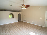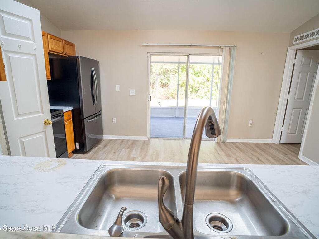 Welcome to your Palm Bay retreat! Ideally located near top-rated schools, shopping, and the beautiful Space Coast beaches, this charming home offers comfort, style, and convenience. Featuring 3 spacious bedrooms, 2 full bathrooms, a 2-car garage, and a screened patio, it's nestled in a highly desirable residential neighborhood. Inside, enjoy luxury vinyl plank flooring throughout the main living areas and primary suite, complemented by a bright, open-concept layout with soaring vaulted ceilings in main living spaces. The kitchen is well-appointed with oak cabinetry and sleek charcoal appliances, perfect for everyday living and entertaining. Both the primary shower and guest bathtub have been freshly resurfaced, adding a touch of modern freshness. This move-in-ready home is a must-see!