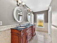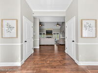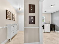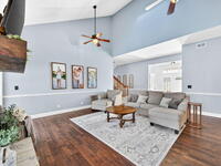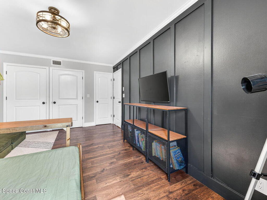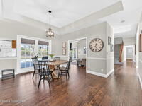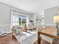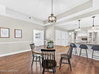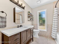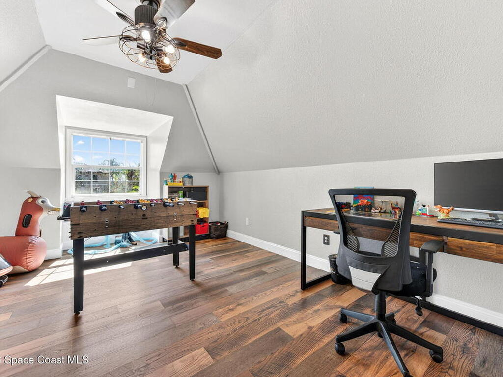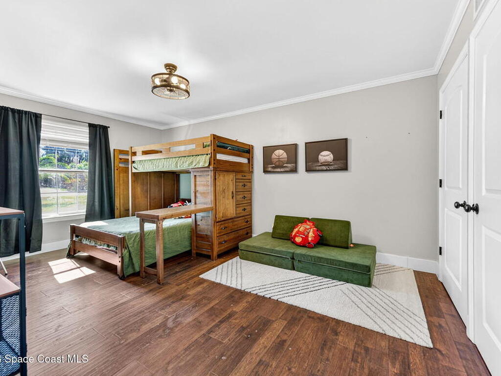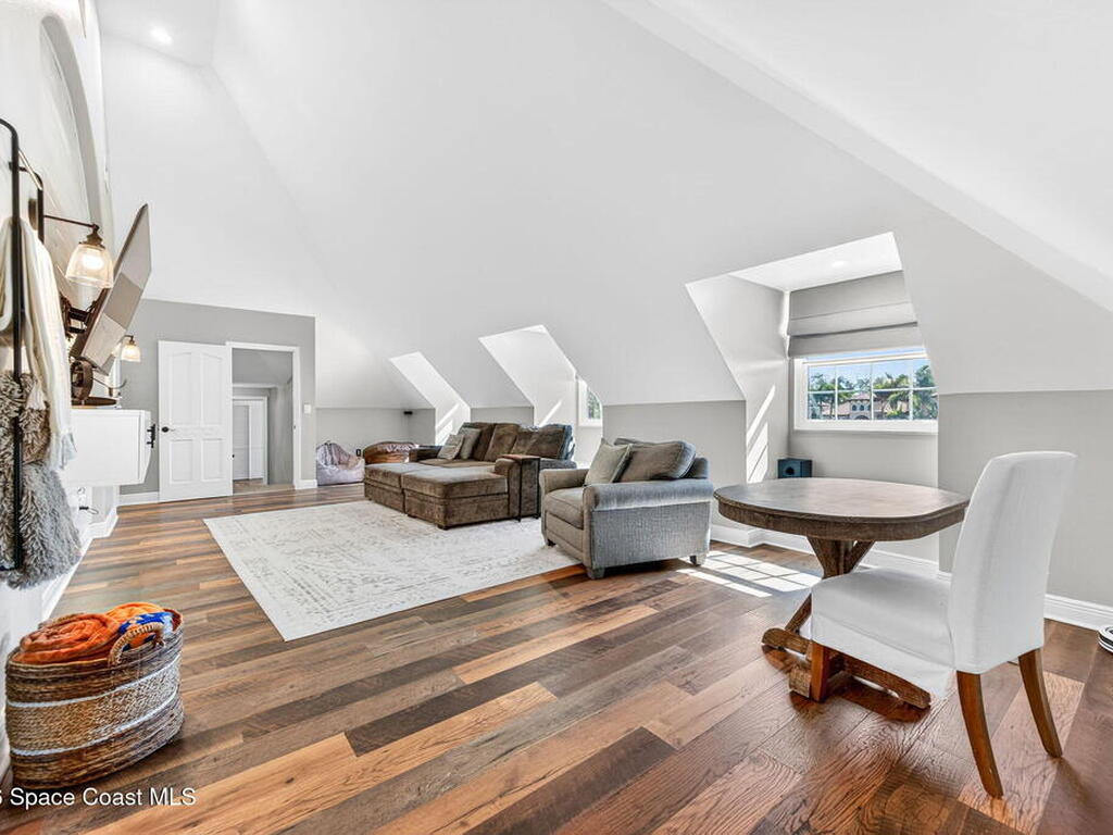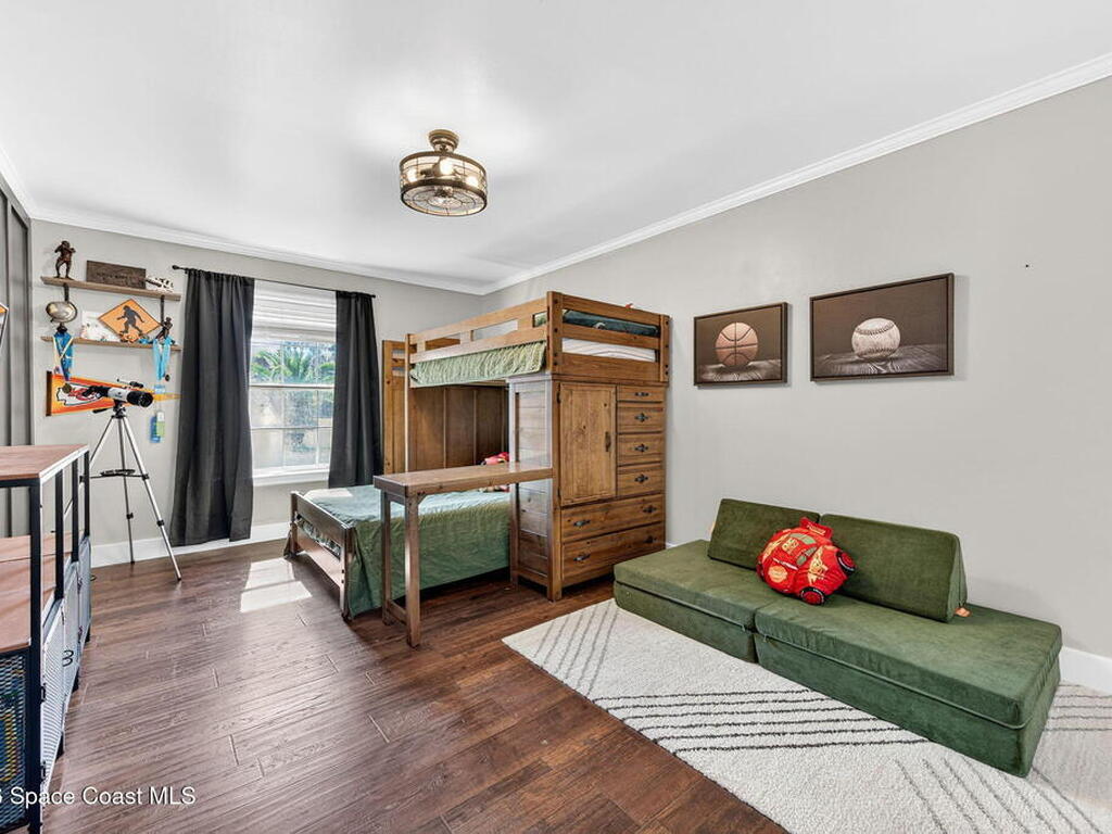 Situated on a 1 acre lot, this 5000+ SF modern farmhouse style pool home is located in the well regarded Rambling Acres subdivision in NW Titusville. The 1st floor offers 4 bedrooms, a formal living room, formal dining room, family room with electric fireplace, updated gourmet eat in kitchen with granite countertops, stainless steel appliances & a beverage fridge plus a mud room & laundry room off of the kitchen with a seperate entrance. The 2nd level includes a family room, kitchenette, game room, 1 bedroom with an ensuite bathroom, an additional full guest bathroom & a private entrance with an exterior deck that overlooks the backyard. Exterior features include a screened in solar heated chlorine pool, fully fenced yard with a shed and a playground backing up to a wooded area where wildlife resides. Under the lanai there is an outdoor entertainment area with a bar. There are so many upgrades to note to include a new roof with solar vents in 2025.