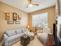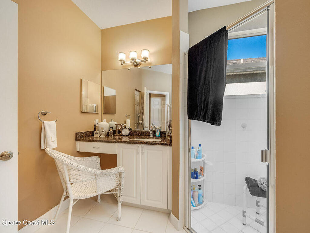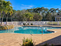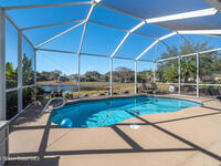Immaculate and truly turnkey, this pristine pool home reflects exceptional care and pride of ownership throughout. Located in a gated community with HOA-maintained lawn and landscaping, the home features a newer roof and A/C, an upgraded kitchen with granite countertops, black stainless steel appliances, two pantries, and a center island, plus updated bathrooms with granite countertops. Enjoy a screened-in pool with water and amazing sunset views, a spacious entertaining patio, and a hot tub that conveys. The flexible layout includes three bedrooms plus an office or flex space. The primary suite offers dual closets and vanities, a water closet, and a large walk-in shower. Convenient access to Bayside Lakes Community Center. Extras included: hot tub, second refrigerator, washer, dryer, and crystal chandelier. Meticulously maintained and truly move-in ready with furnishings negotiable!