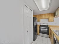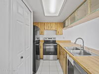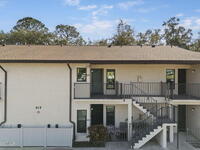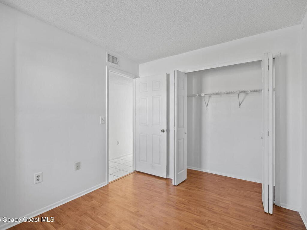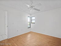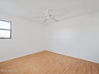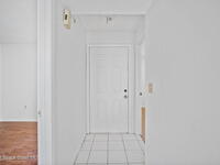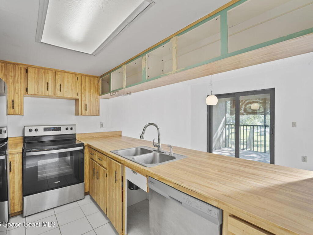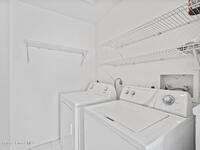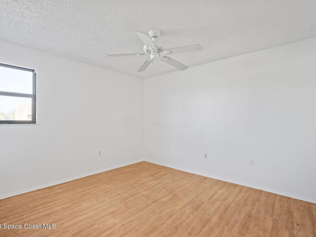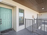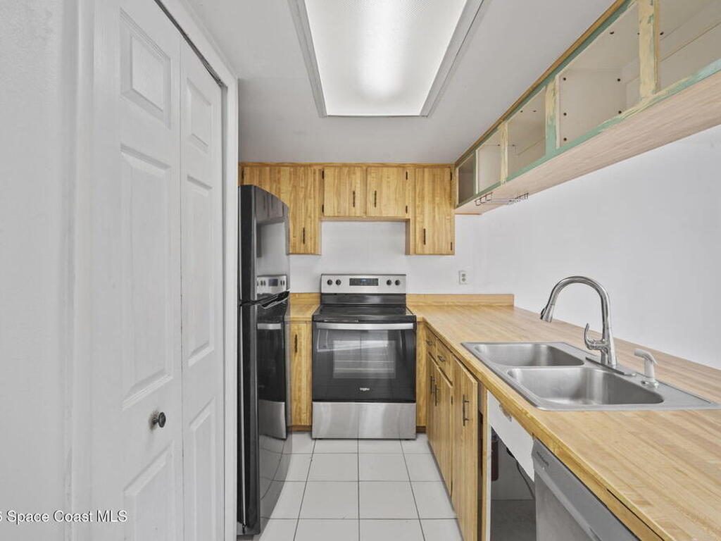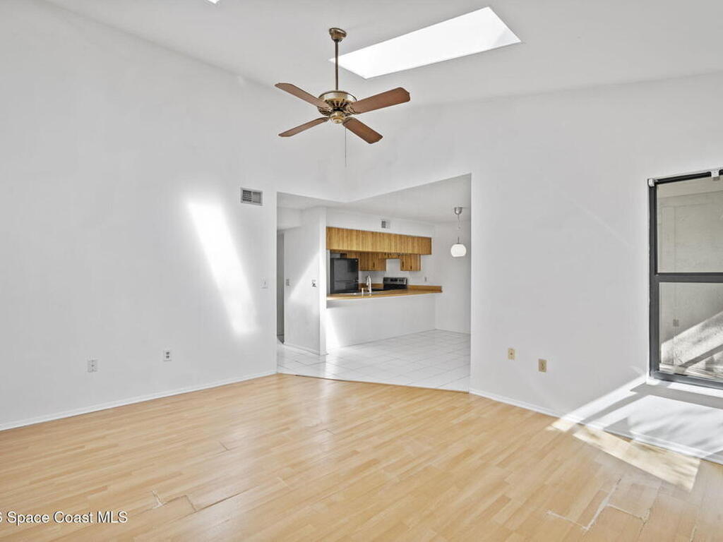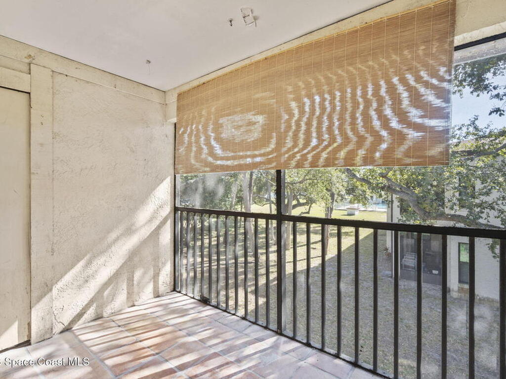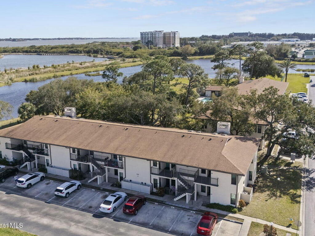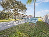 Perfect starter home or investment opportunity in Harbor Woods, Merritt Island! This two-bedroom, two full-bath condo offers an efficient, well-designed layout that lives larger than its square footage. Recently installed hurricane impact windows and a sliding glass door provide peace of mind and energy efficiency. The spacious primary suite features a walk-in shower and single-sink vanity. The main living area features vaulted ceilings accented by two beautiful skylights, creating a bright and open feel. The efficient galley-style kitchen includes a breakfast bar and newer appliances, while the indoor laundry room comes complete with a washer and dryer. Enjoy views from the dining area through the screened lanai overlooking the community pool in the distance. Additional updates include a newer A/C and water heater (2020). Condo fees cover water, cable/internet, and all exterior maintenance. Harbor Woods is a well-managed community. Schedule your showing today!