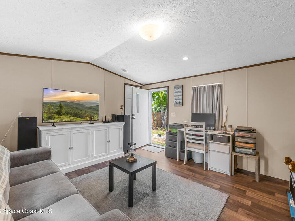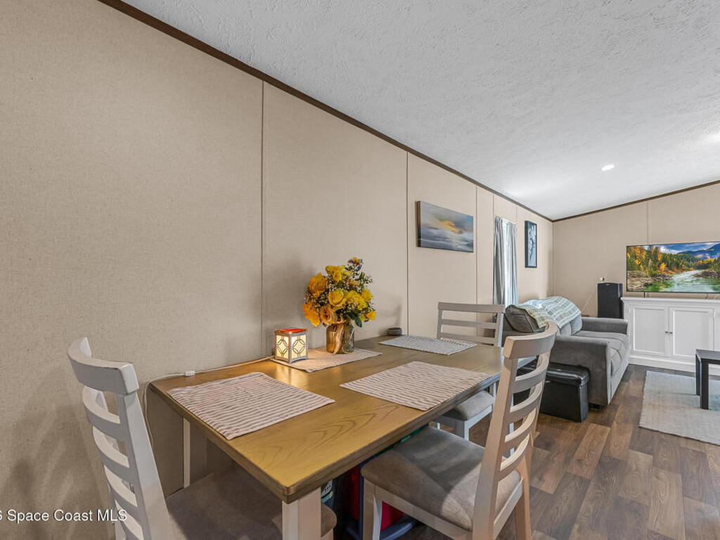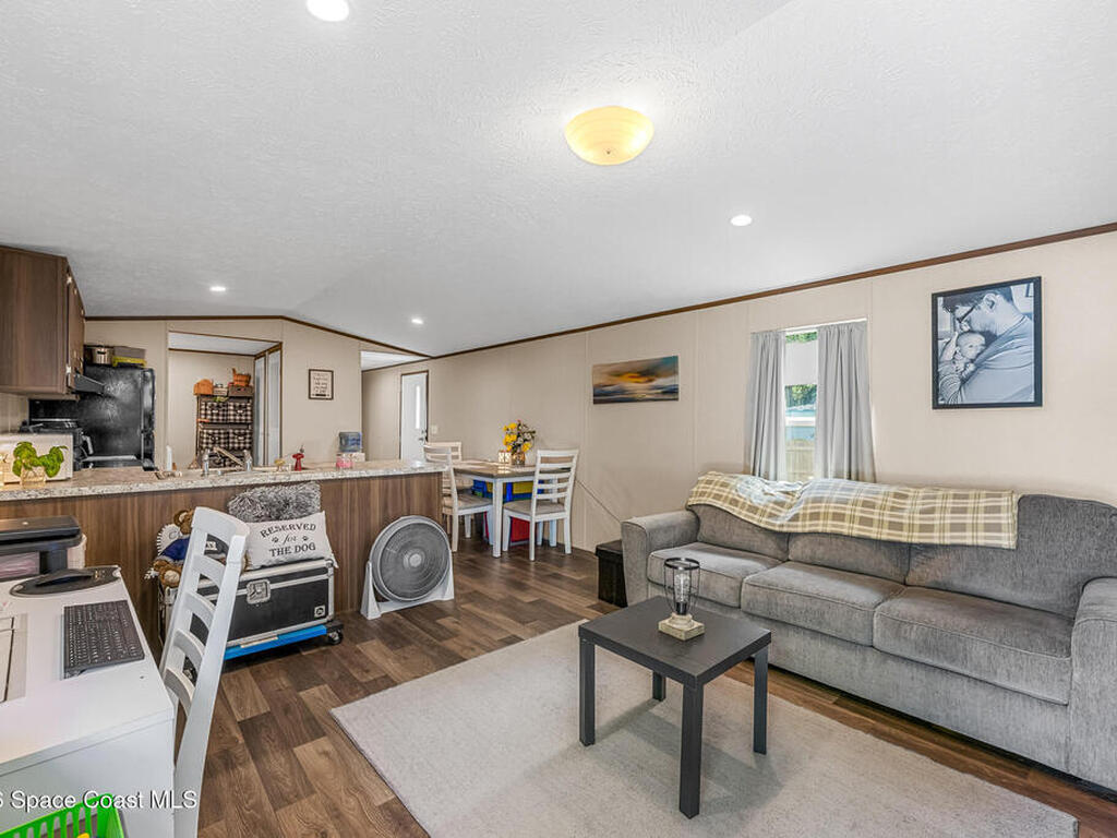 This brand new 2 bedroom, 1 bath manufactured home in Cocoa has been updated with a new privacy fence, gravel driveway, metal shed, fruit trees, new septic system, new AC, new kitchen appliances, skirting, and a concrete easement. The lot is owned and has been fully cleared. Perfect for anyone seeking low-maintenance living in a convenient Space Coast location. Bring all your toys: Boats, RVs, etc. Close to the beaches, US1, and the Space Center. Don't miss the incredible opportunity to own a fully updated home at an affordable price and sit back and watch the launches from your front yard!