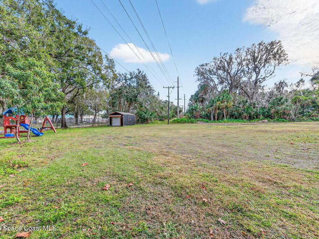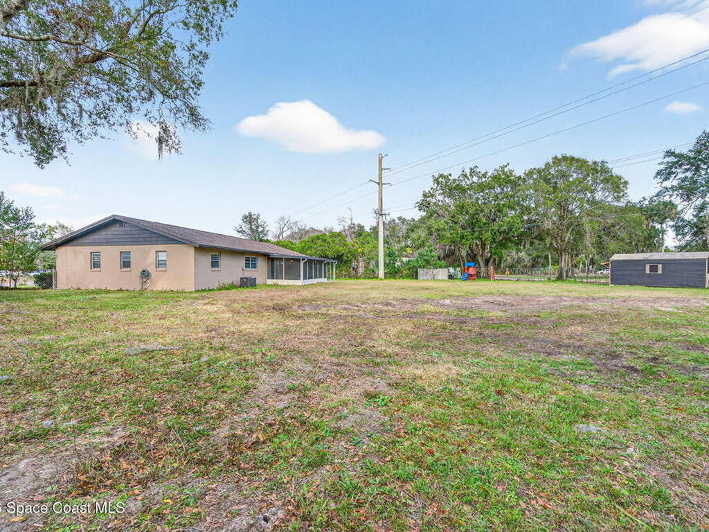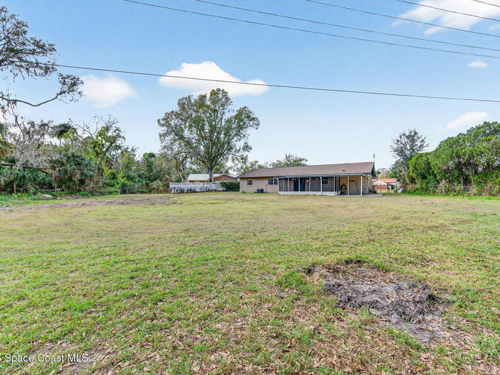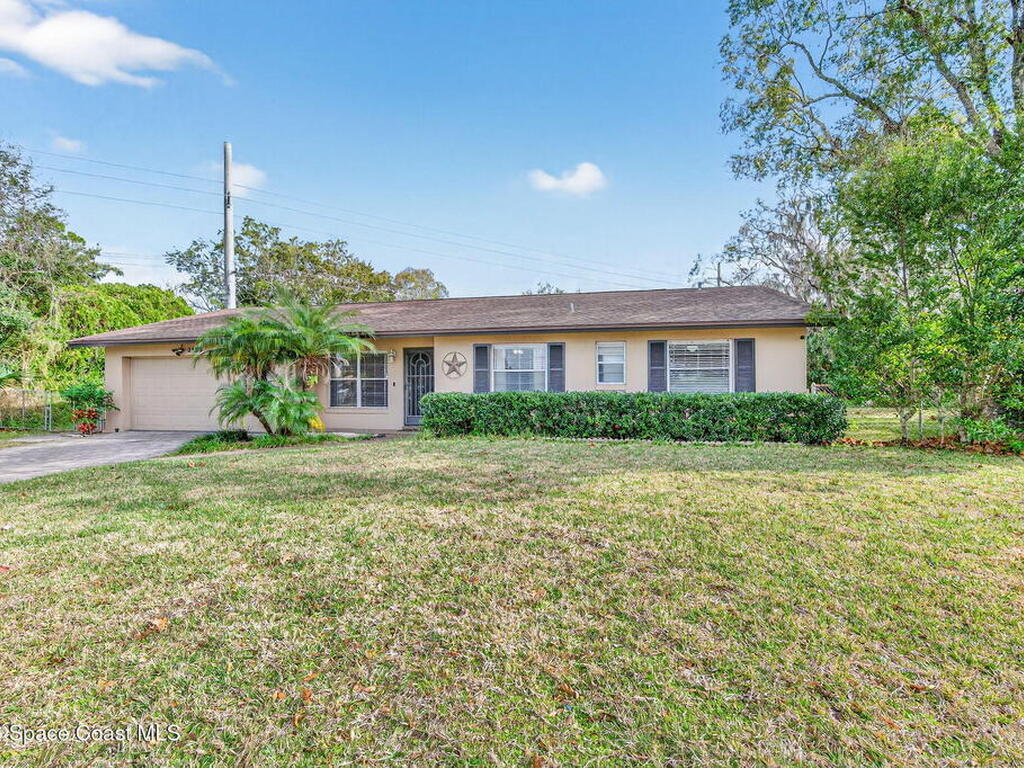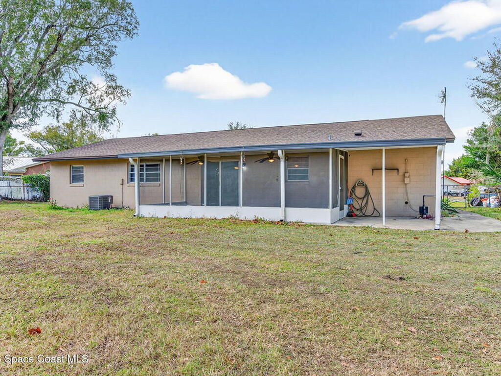 Welcome to this 3 bdrm 2 bath neat clean home w/ an oversize 2 car garage located on almost a third of an acre at the end of quiet dead end street in a cul-de sac. Improvements include new roof shingles in 2020, new HVAC and air ducts in 2021 plus an updated top-tier Cultler Hammer electrical panel, newer hot water heater & all new interior paint on walls, ceilings, doors & trim. The kitchen has also been updated with newer kitchen cabinets & stainless appliances. There is an inside utility room that includes a washer & dryer & a small freezer. The 500 sq ft garage has built-in cabinets & a refrigerator to hold your cold drinks. A 10 x 24 screen porch overlooks a private & expansive back yard with no back yard neighbors. Its a great place for your toys & pets & comes w/ 2 storage sheds near the back of the property w/ no home owner association. No carpet to mess up either!Great starter home just waiting for you in a very nice well maintained neighborhood in central Titusville.